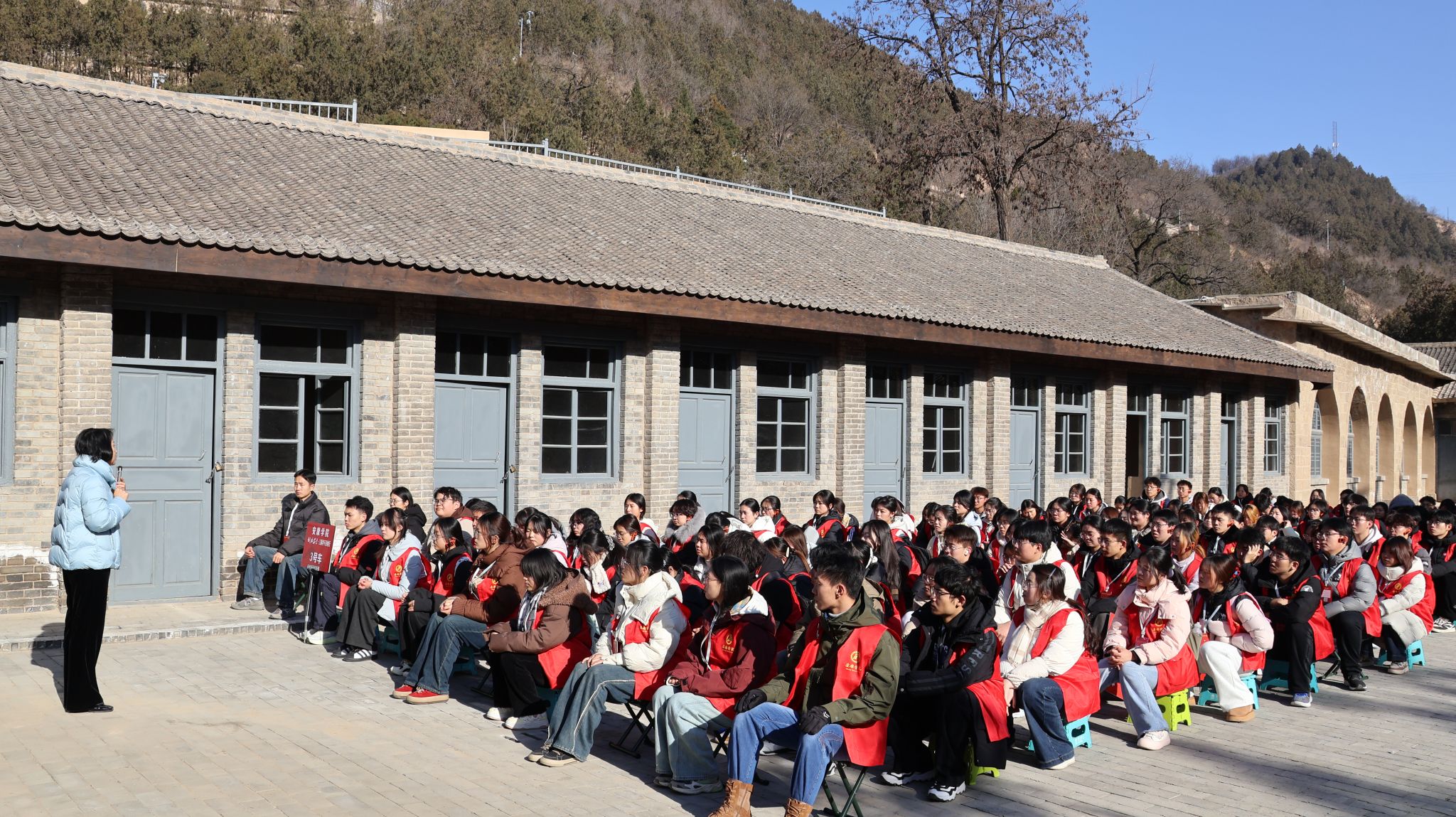 本次活动将课堂搬到革命现场,让红色教育更具感染力。6日上午,在杨家岭革命旧址,团队开展了《爱国青年奔赴延安的信仰与抉择》现场教学。授课老师结合旧址实景,生动讲述了革命年代无数青年冲破封锁、奔赴延安的热血故事,深入剖析了“到延安去”背后的信仰力量与时代担当。同学们围坐一堂,在历史场景中与革命先辈隔空对话,对“信仰”二字有了更深刻的理解。