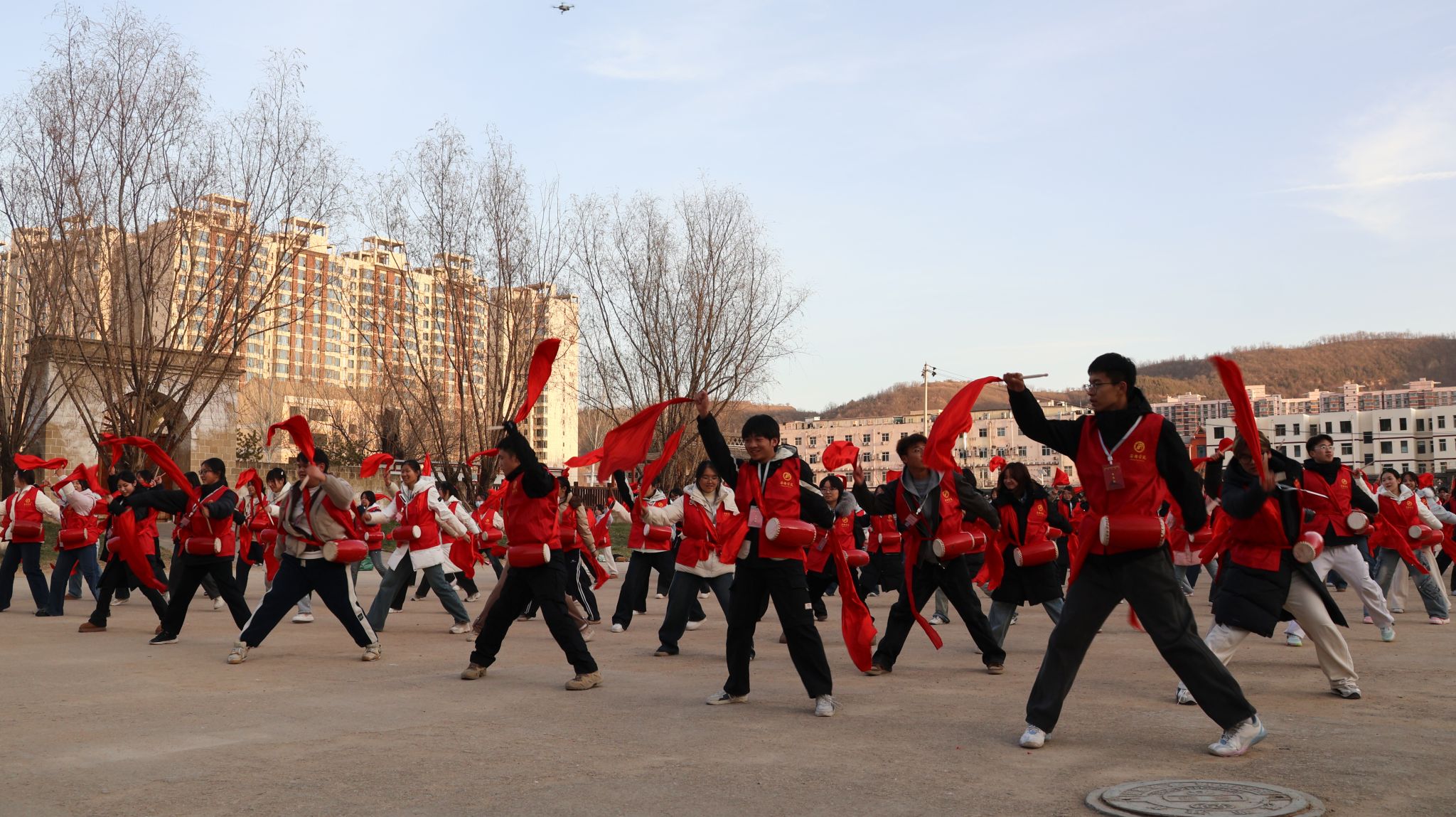 在实地观摩与现场教学的基础上,活动通过多元体验形式,让红色精神入脑入心。6日下午,实践团队走进延安文艺纪念馆、鲁艺旧址,探寻红色文艺的根脉。在延安文艺纪念馆前,同学们齐声合唱《黄河大合唱》,激昂雄壮的歌声展现了Beat365学子的蓬勃朝气,也表达了对祖国的无限热爱。在鲁艺旧址广场,同学们跟随专业老师学习安塞腰鼓,在欢快的氛围中感受陕北民俗文化的独特魅力,体会革命文艺凝聚人心、鼓舞斗志的强大力量,并现场进行了汇报表演。当晚,同学们观看了红秀《延安延安》,通过精彩的舞台演绎,重温革命年代青年学子投身革命的热血岁月,深刻领会到“到延安去”的时代召唤。