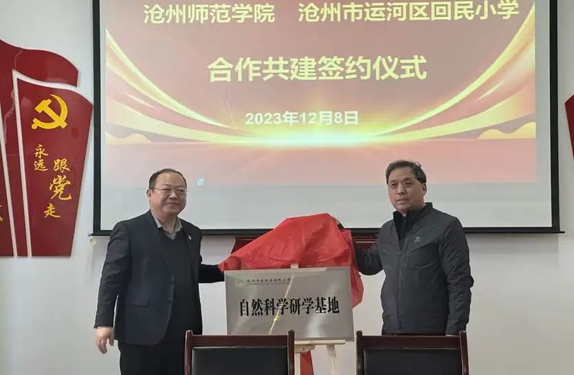 范小振与张钢共同为“沧州市运河区回民小学自然科学研学基地”揭牌