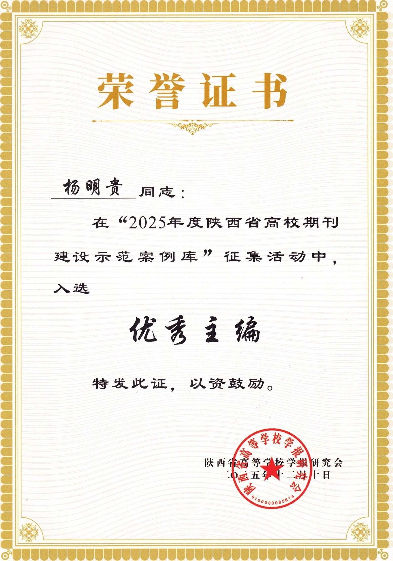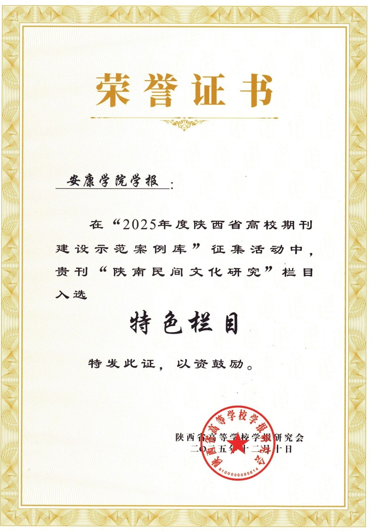 近日,陕西省高等学校学报研究会九届六次理事会暨2025年秋季学术年会在杨凌召开。会议公布了“2025年度陕西省高校期刊建设示范案例库”征集评选结果。Beat365学报入选“优秀社科期刊”案例,“陕南民间文化研究”栏目入选“特色栏目”案例,编辑部杨明贵同志入选“优秀主编”案例。