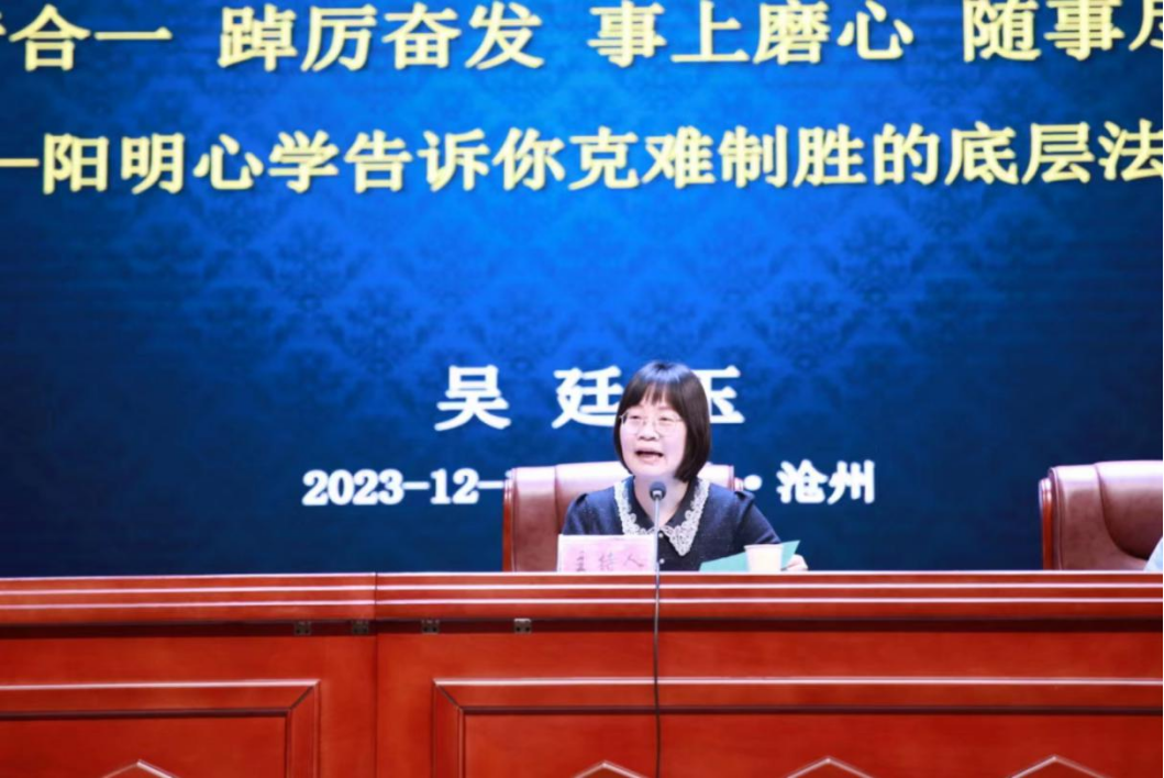 12月19日,文学院邀请著名学者吴廷玉教授在齐越大讲堂举办《知行合一 踔厉奋发 事上磨心 随事尽道》阳明心学讲座。此次讲座由文学院院长王金萍主持,文学院、马克思主义学院、教育学院、政史学院约1000名师生代表聆听讲座。