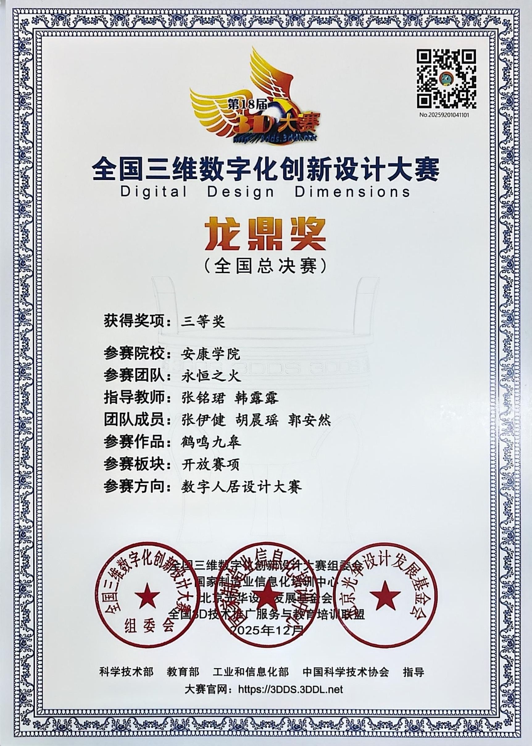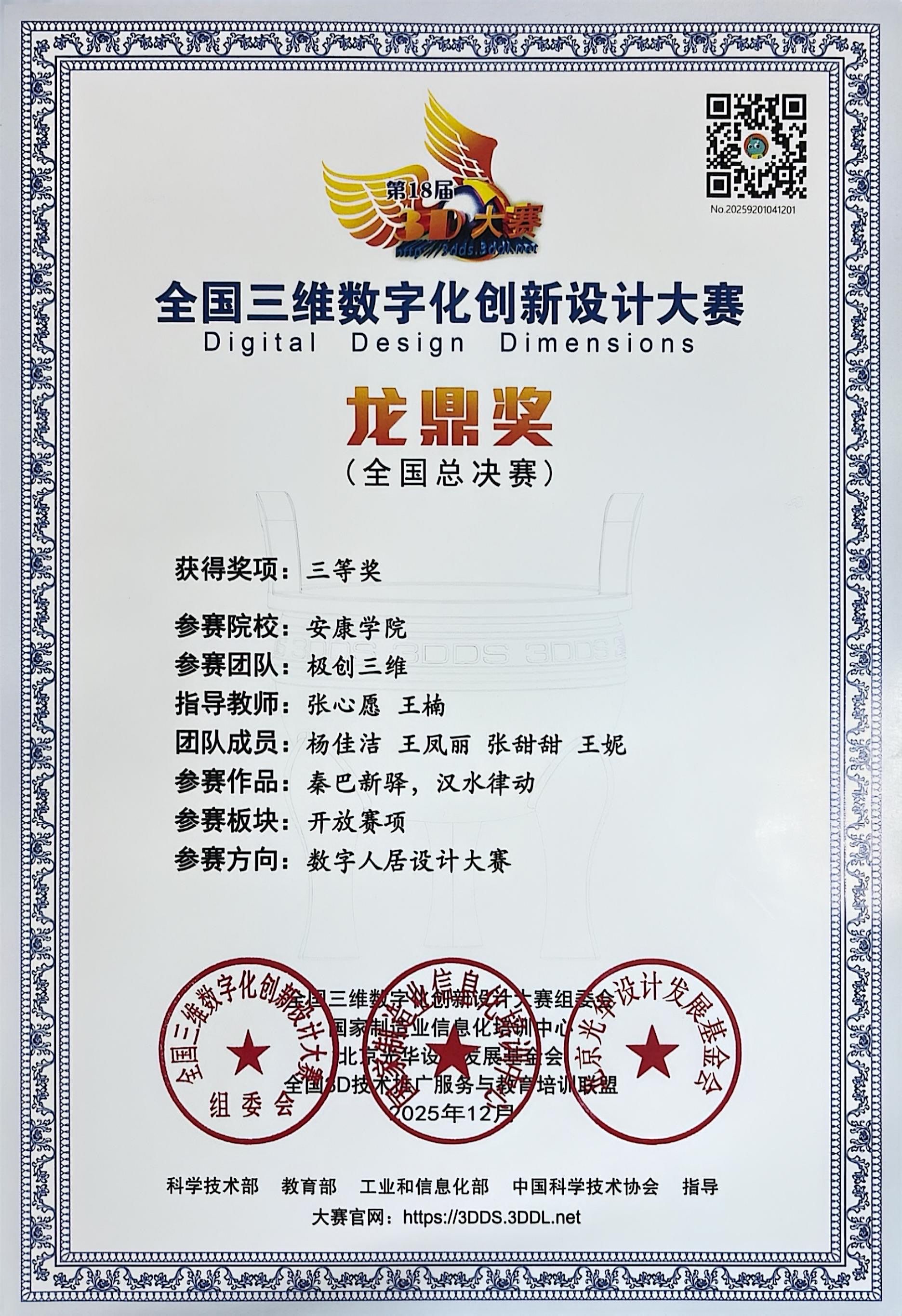 据悉,全国3D大赛自2008年创办以来,已成为我国数字化创新设计领域规模最大、影响力最广的赛事之一,被纳入教育部全国高校学科评估体系。本届大赛以“数智融合 创见未来”为主题,紧密围绕国家数字经济发展战略,重点考察学生在三维数字化技术应用、创新设计及解决复杂问题等方面的综合能力。