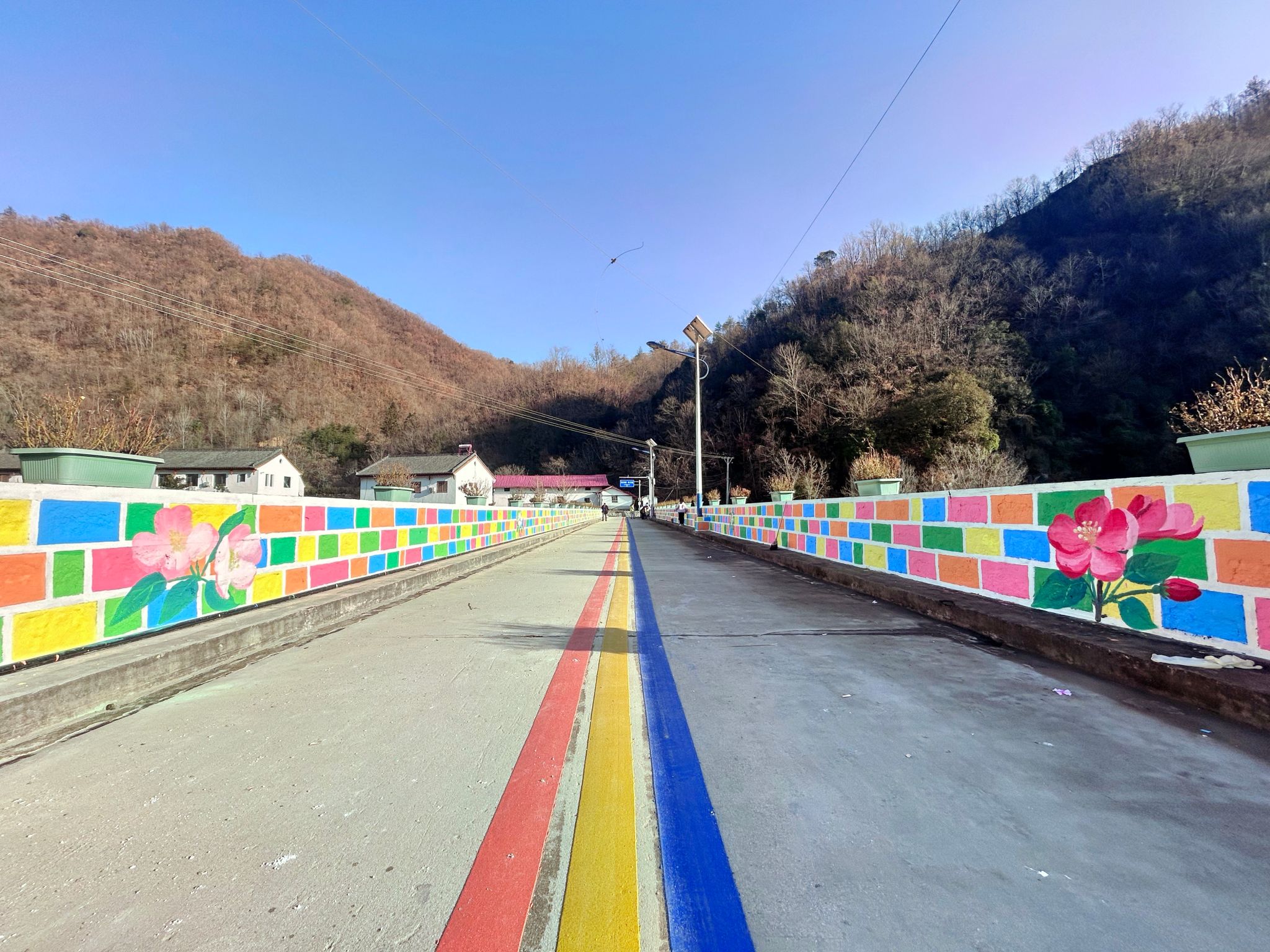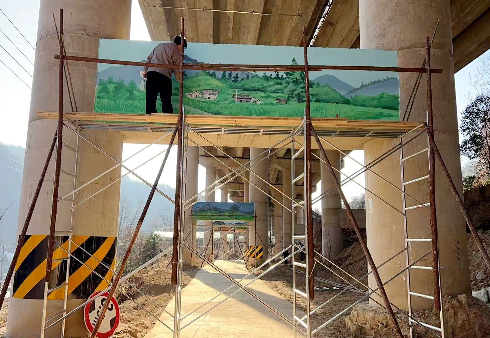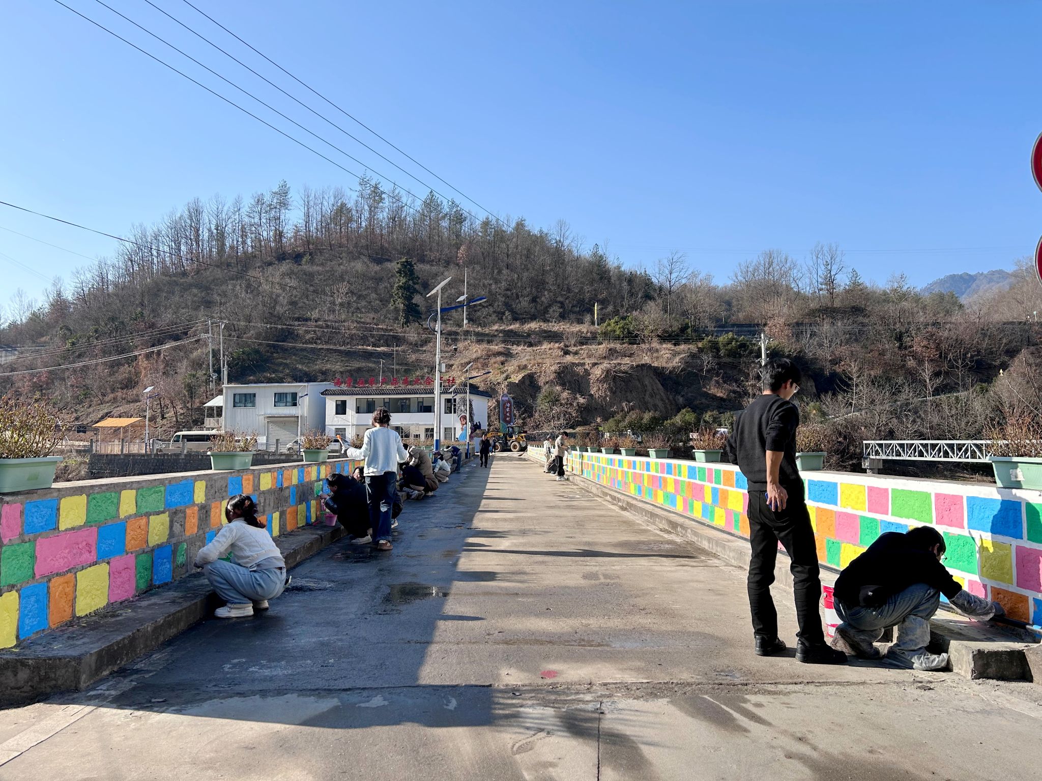 活动中,面对严寒天气,师生团队热情不减,充分发挥艺术专业特长,以画笔为媒,以色彩为语,通过深入挖掘当地历史文化脉络与自然生态特色,巧妙融入乡土文化符号,将村庄的历史记忆、田园风光与时代风貌凝练于墙体画卷。一幅幅构思精巧、寓意深远的墙绘作品跃然桥梁与墙面之上,既深情回望了往昔质朴的农耕生活,也生动展现了绿水青山生态之美与乡村振兴的时代气象。这些充满创意的作品吸引了众多村民驻足观看,大家纷纷为师生们的精湛技艺与辛勤付出点赞。