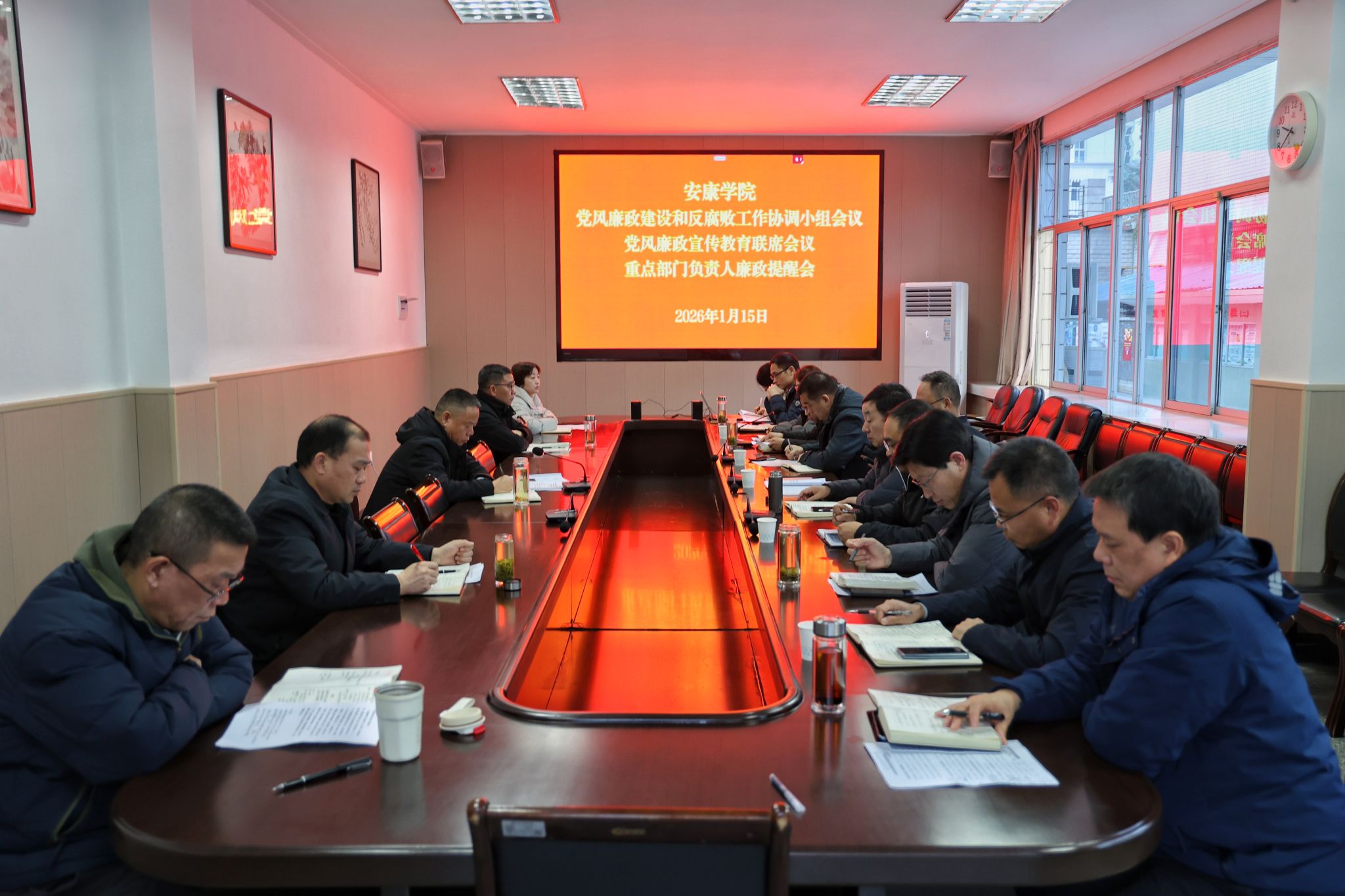 1月15日上午,学校纪委召开了党风廉政建设和反腐败工作协调小组会议、党风廉政宣传教育联席会议、重点部门负责人廉政提醒会。党委副书记、纪委书记、监察专员安永强,党风廉政建设和反腐败工作协调小组成员单位、党风廉政宣传教育联席会议成员单位、重点部门负责人参加了会议。会议由安永强主持。
