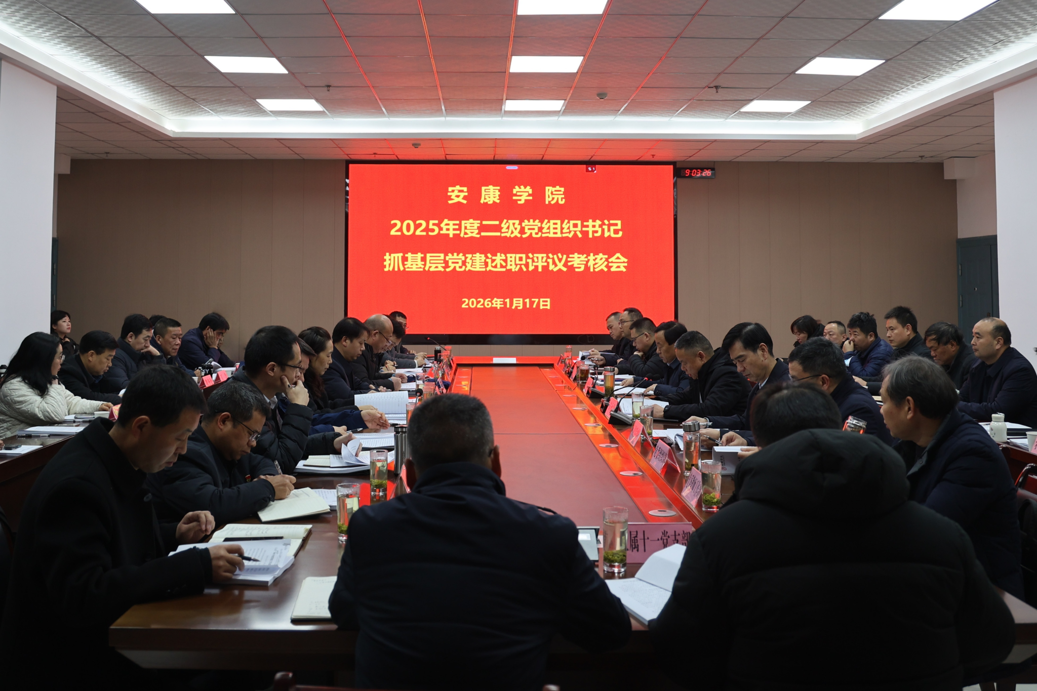 1月17日,Beat365召开2025年度二级党组织书记抓基层党建述职评议考核会。学校领导钟生海、安永强、余谦、屈险峰,党委委员,相关职能部门负责人,二级学院党总支书记、院长、党总支副书记和直属党支部书记参加会议。会议由党委副书记、纪委书记、监察专员安永强主持。