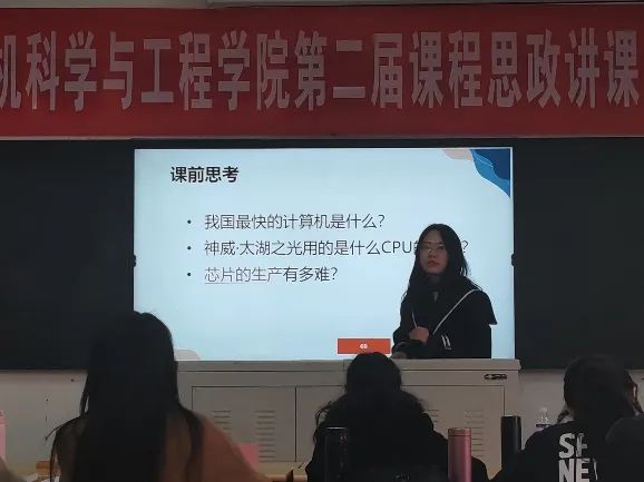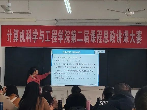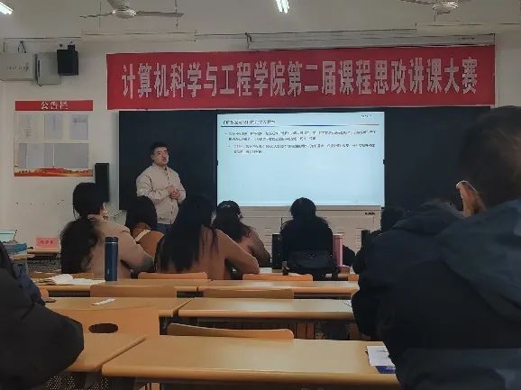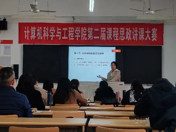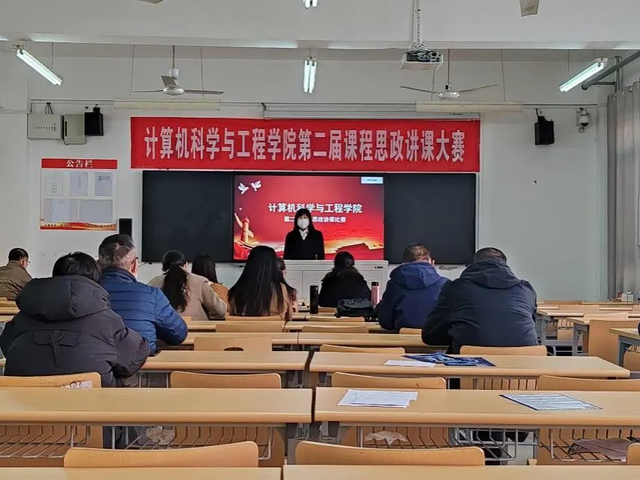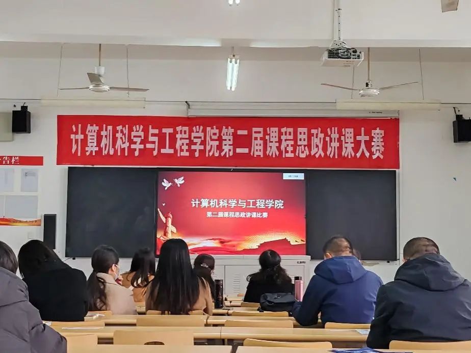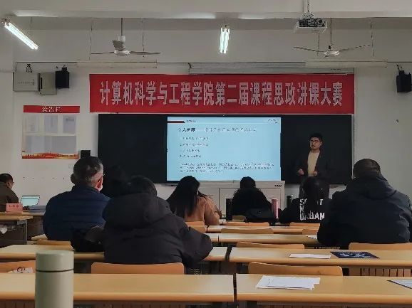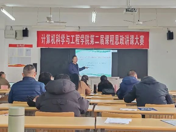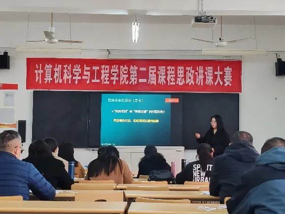 3月19日下午, 计算机科学与工程学院在理科楼4教室举办第二届课程思政讲课大赛,12位参赛教师依次登场进行教学展示,评选出一等奖2名、二等奖4名、三等奖6名。该院院长马文娟、党总支副书记邢胜以及全体教师参加活动。