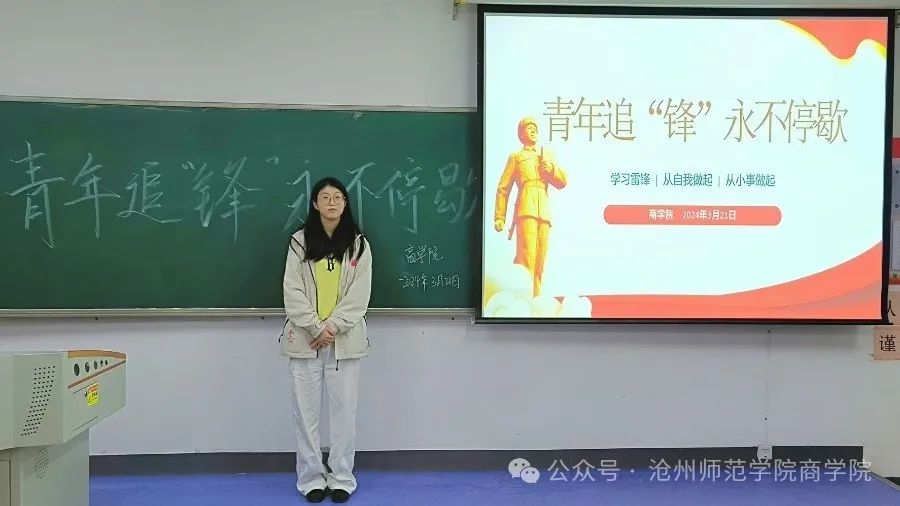 为贯彻习近平总书记对深入开展学习雷锋活动的重要指示精神。商学院于3月21日在文科楼6阶梯开展“学习雷锋”主题团课,本次团课由23级市场营销二班团支书姜璐芳主持,23级商学院全体同学参加。