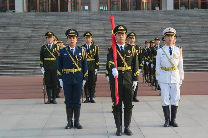 清晨七点,升旗仪式正式开始。英姿飒爽的国旗护卫队的同学们步履铿锵,目光坚定,伴着晨曦,迈着庄严的步伐,护送鲜艳的五星红旗来到升旗台前。随着雄壮激昂的《义勇军进行曲》响起,全体师生肃立,行注目礼。在嘹亮的国歌声中,鲜艳的五星红旗沐浴在晨光中冉冉升起。