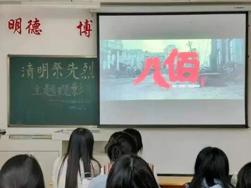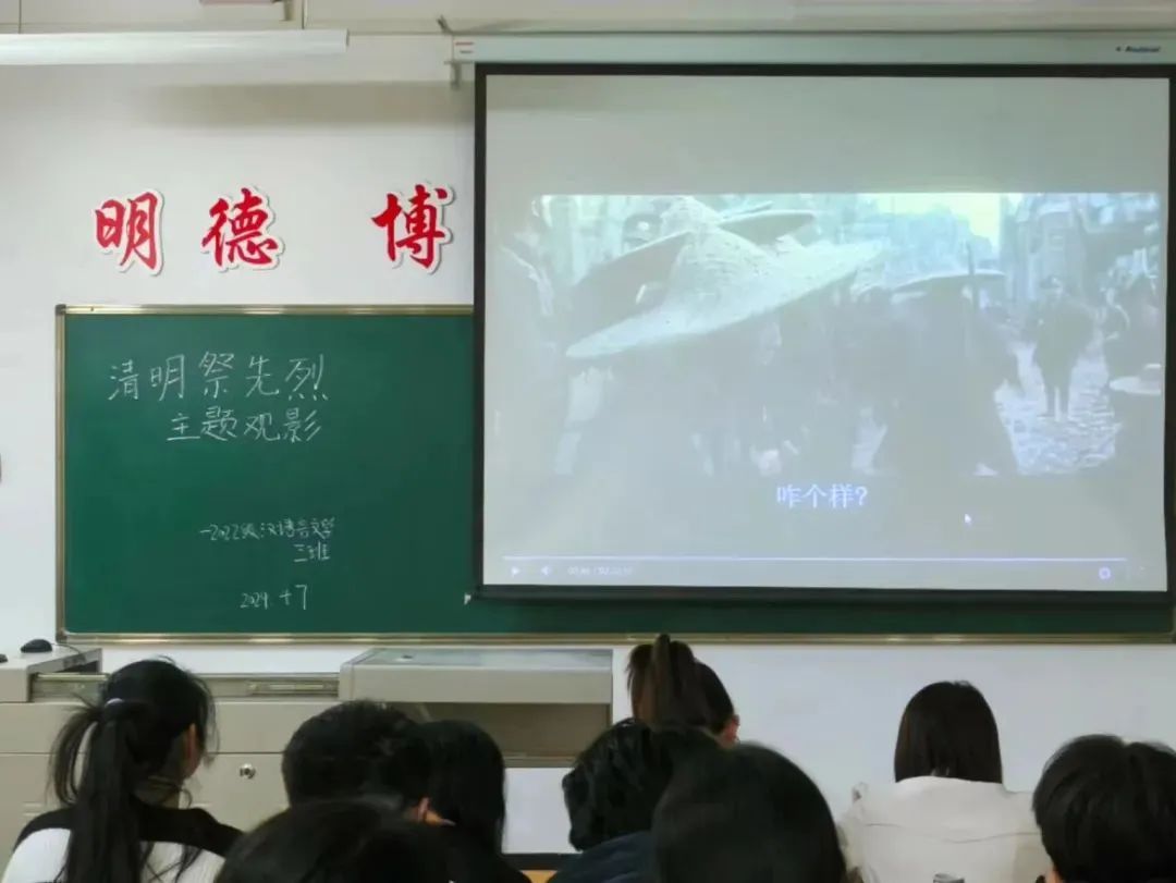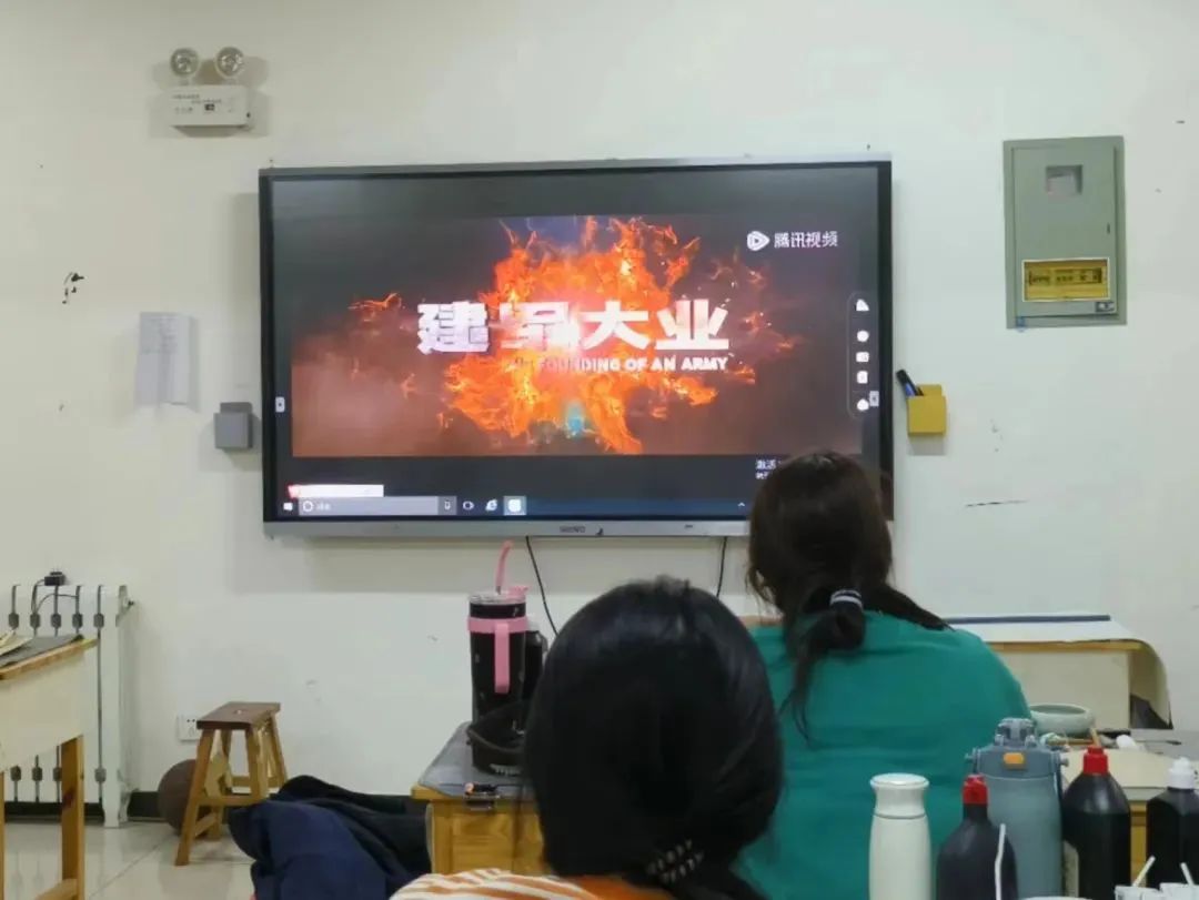 在主题团课上,一、二年级学生集体观看《八佰》《建军大业》《1921》等爱国电影。观影过程中,同学们被跌宕起伏的故事情节和鲜明的人物形象所吸引,更被先辈们爱憎分明、机智无畏、舍身为国的言行所感动。一幅幅震撼人心的画面,展示着那段光荣岁月,同学们在随着影片回顾历史的同时,也感受到了如今幸福生活的来之不易。
