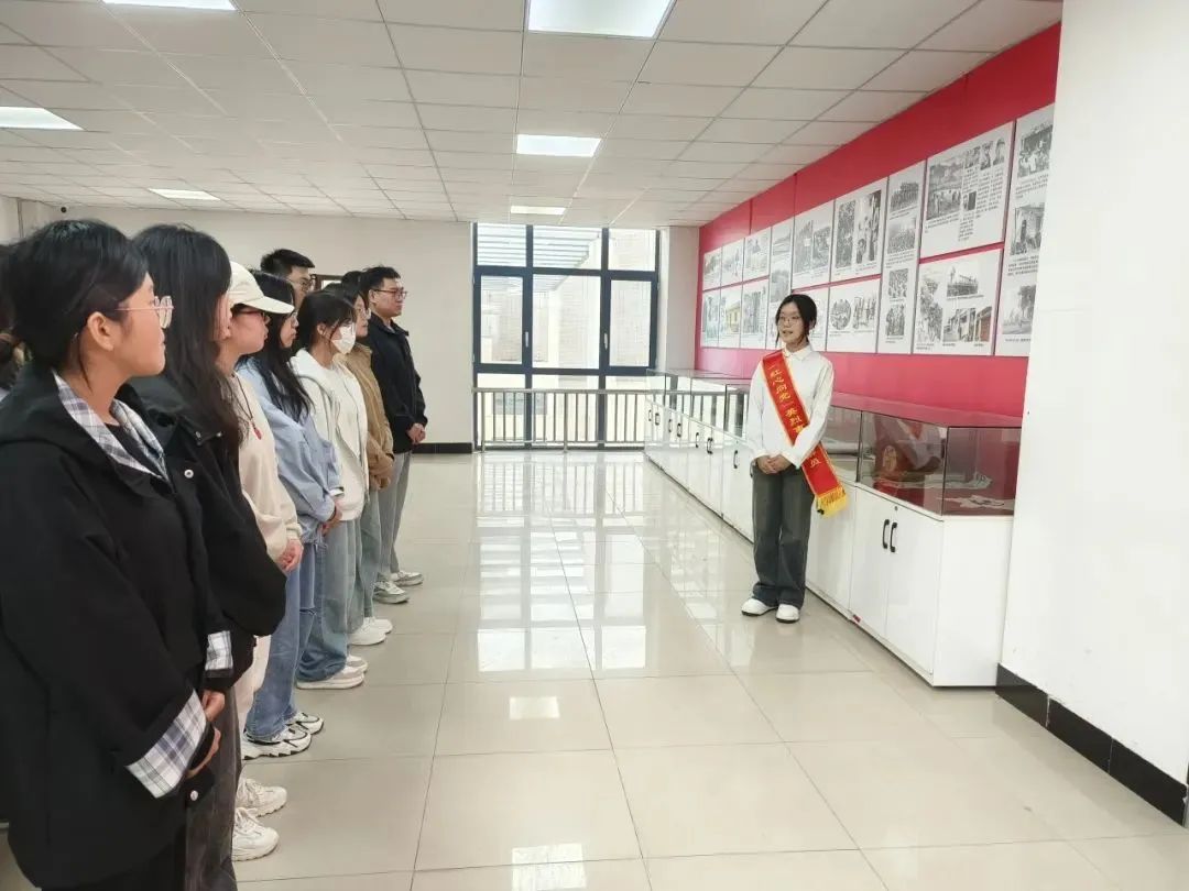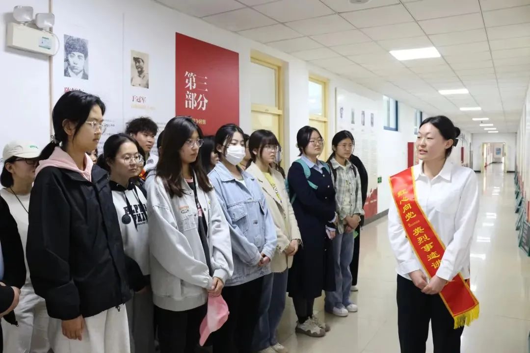 当日,文学院教师丁咚带领入党积极分子前往马克思主义学院红色文化长廊进行观摩学习。在长廊中,同学们面向英雄人物画像肃立致敬,表达对革命先烈的深切缅怀。一件件承载着历史岁月的物品诉说着先辈的不朽伟业,通过聆听讲解,同学们了解了先辈们英勇无畏的事迹,感受了先辈们对党、国家与人民深切的爱。