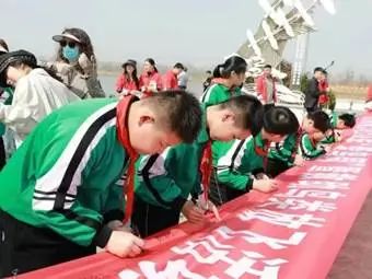 沧州市水月寺小学学生宣读了爱鸟护鸟倡议书并纷纷在活动条幅上签字,随后还向沧州市野生动物救护中心捐赠了学生筹集的爱心捐款。