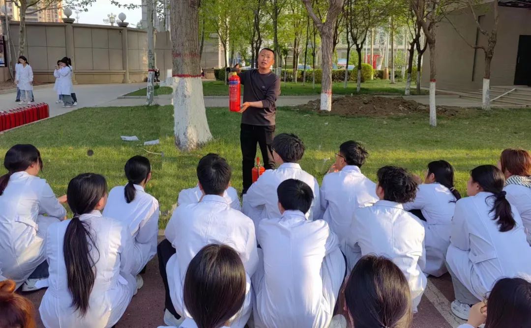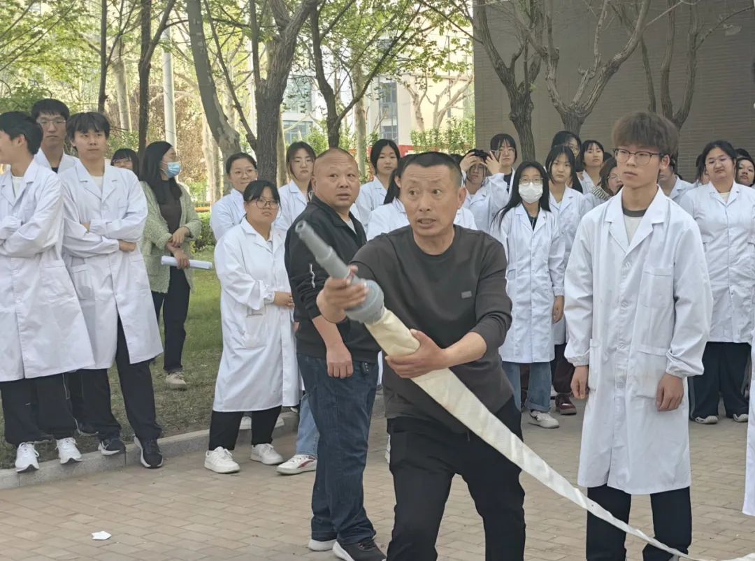 安全处副处长张金峰详细地讲解了灭火器的正确使用方法,学院教师进行实操演示,学生们轮流迅速地完成了“一提、二拉、三握、四压”这一连贯的灭火动作。