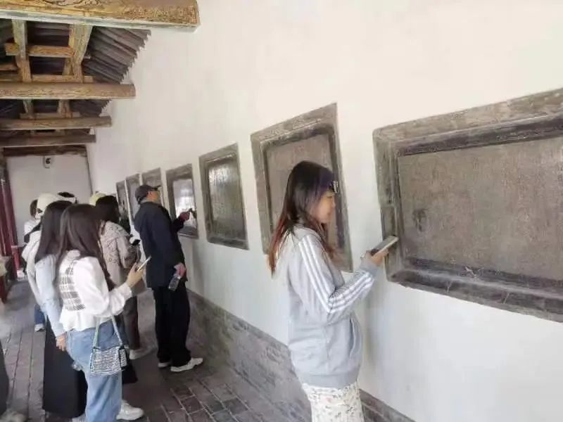 在专业老师们的带领指导下,学生们在山西恒山、晋祠、明堂博物馆以及青铜器博物馆实地考察,深入了解了古代文字的魅力;在西安碑林、安阳殷墟博物馆直观感受了文字演变的过程,深入了解了书法从实用性到艺术性追求过程;在洛阳千唐志斋学生亲自进行了拓片制作实践;在娲皇宫和响堂山对北朝碑刻实地考察,感受了与平时字帖的不同。