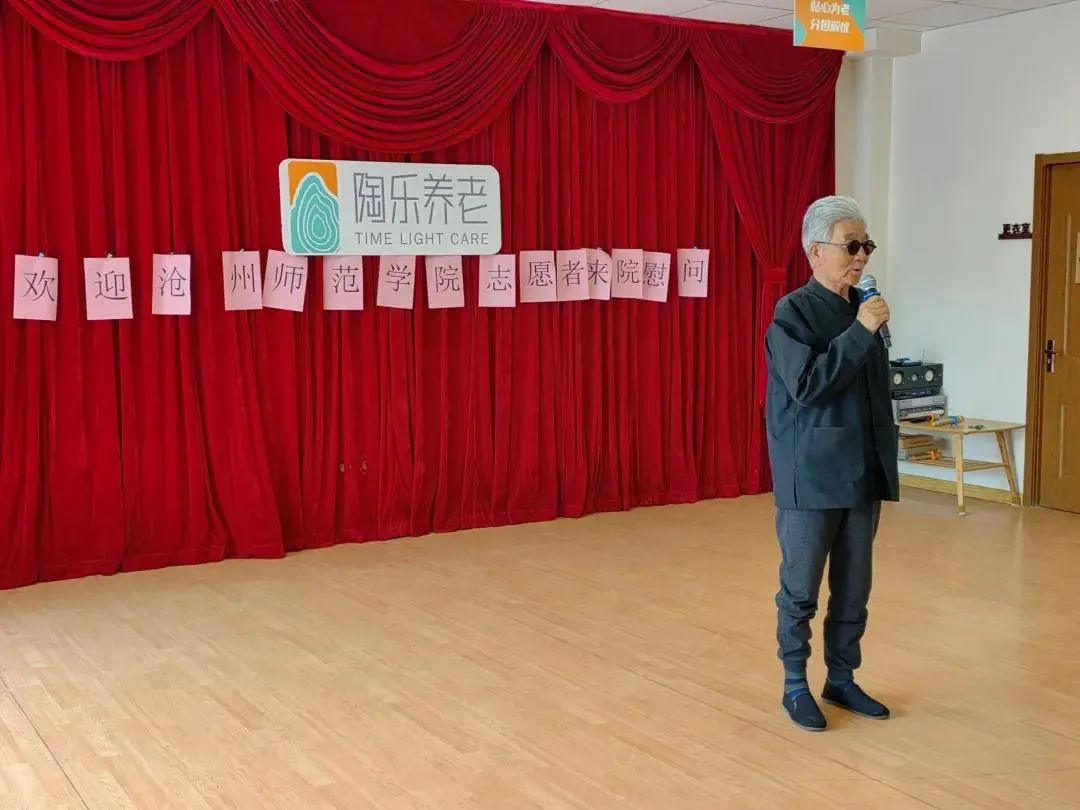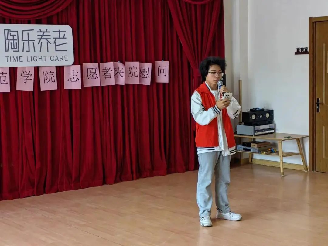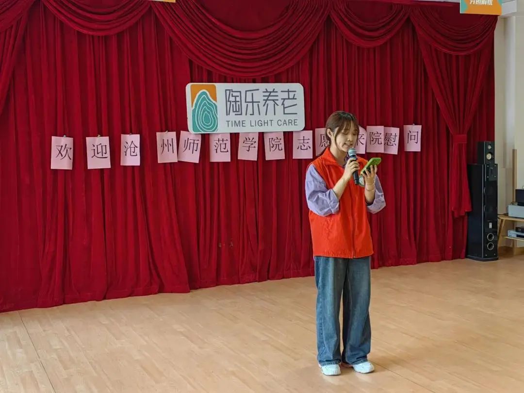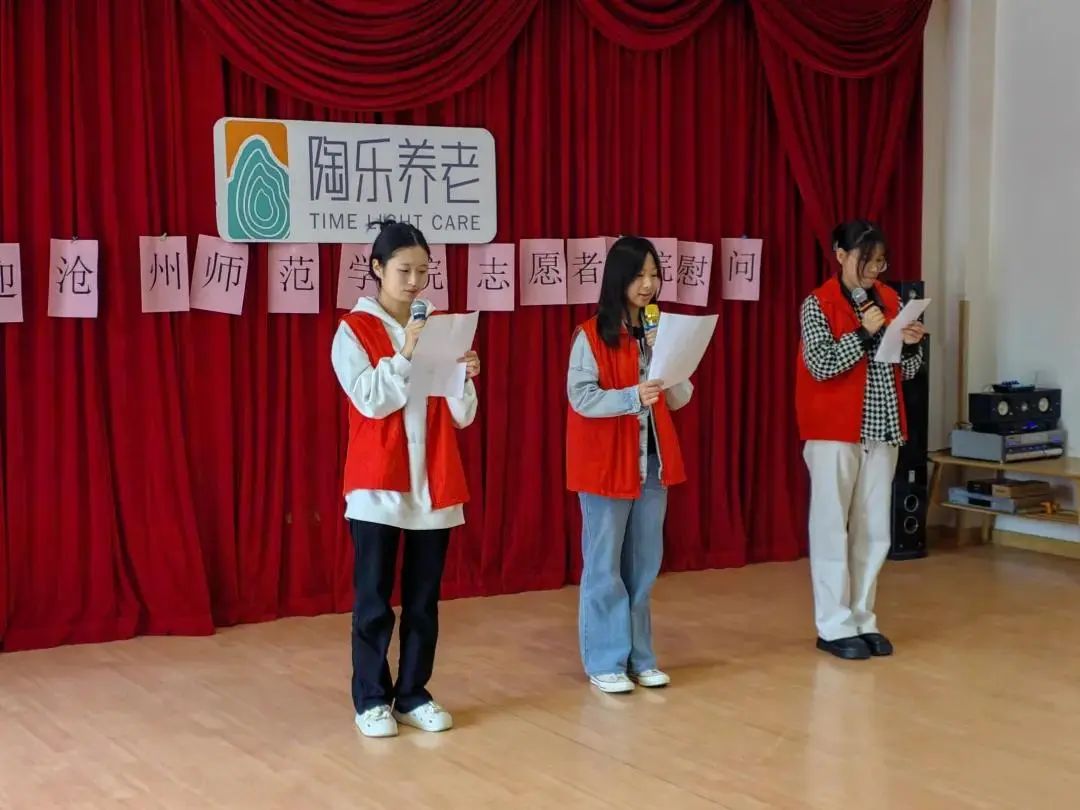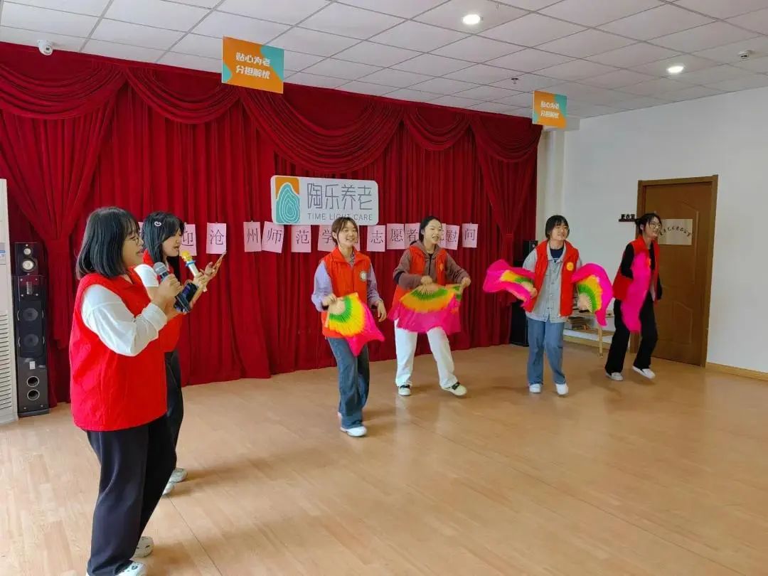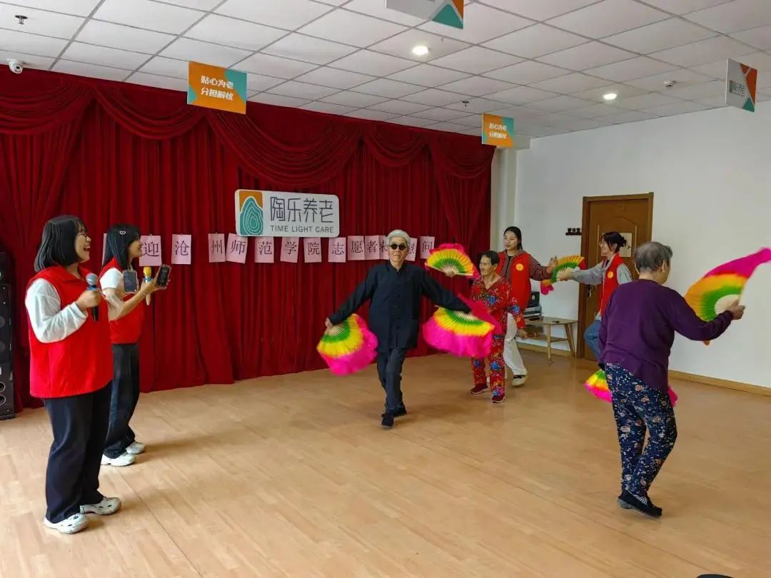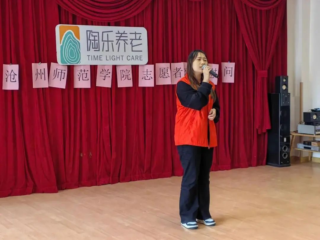 志愿者们以文艺朗诵、歌唱和舞蹈等多种形式给老人们带去精彩纷呈的表演。在温馨互动中,他们与老人共叙往昔岁月,倾听时光流转中的故事,现场气氛温暖和谐。