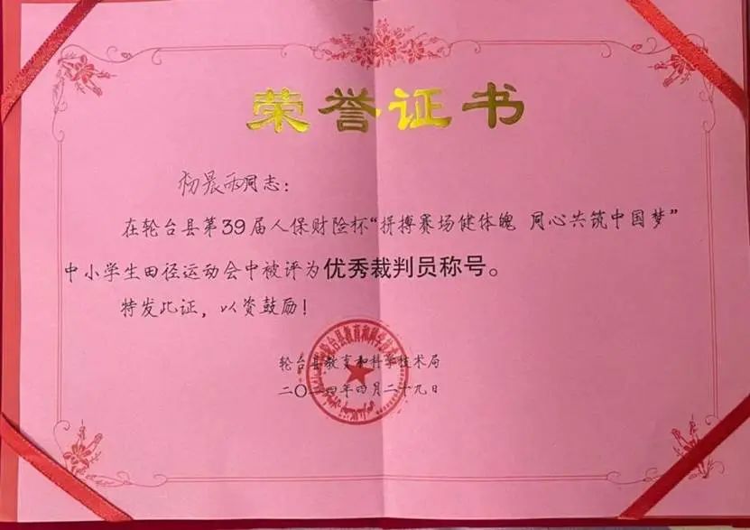 4月28日,我们十分荣幸地承办了第39届轮台县中小学生田径运动会,再次担任主持工作的我,相较于上次多了些经验和从容。国旗方队气宇轩昂,彩旗方队勃勃生机,鼓号方队英姿飒爽,花环方队洋溢青春。各中小学代表队步伐矫健,精神抖擞,展现着轮台学子的高昂斗志。作为本次赛事的东道主,我们尽力展现一中分校的热情与责任,我一边为学生颁发奖品奖状,一边协调各裁判有序进行工作,为期两天的运动会让我疲惫并快乐着。赛后,我获得了由轮台县教育与科学技术局颁发的优秀裁判员荣誉称号。我清楚,这既是一种肯定,亦是一种激励,使我更加崇敬教育事业,更加热爱新疆这片热土。