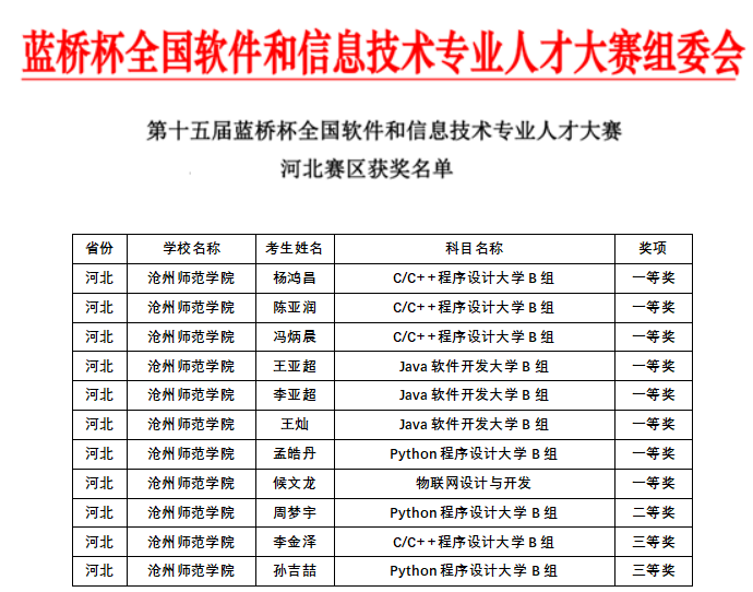 4月13日,计算机科学与工程学院15名同学参加了工业和信息化部人才交流中心主办的蓝桥杯大赛,蓝桥杯大赛是面向全国高校大学生的IT类学科竞赛,本届比赛来自北京大学、清华大学、复旦大学、上海交通大学等1900多所高校的23万名选手同台竞技,该院学子选取C/C++、JAVA、Python、物联网四大竞赛科目进行了激烈比拼,比赛成绩又一次实现了新的突破。本次比赛成绩优异,截止今日,在省赛阶段共获得省级一等奖8项、二等奖1项、三等奖2项(获奖率73%,一等奖获奖率53%),其中8名同学已经开始积极备战国赛。