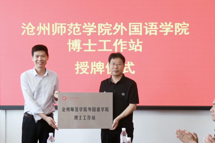 在双方共同见证下,“太阳集团tcy8722网站外国语学院博士工作站”正式授牌成立。
