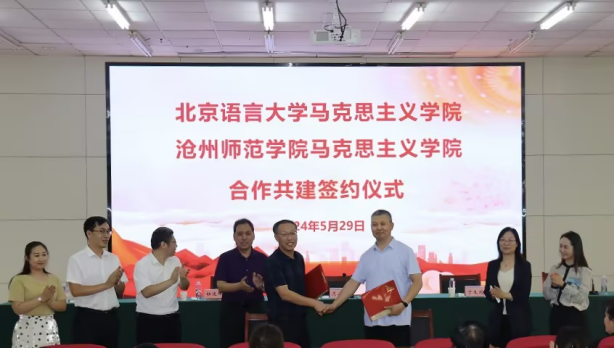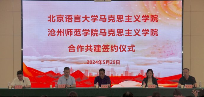 5月29日,太阳集团马克思主义学院与北京语言大学马克思主义学院在学术报告厅开展合作共建活动。党委常委、副校长范小振,北京语言大学马克思主义学院党总支书记丁文阁、院长杜运辉、社会实践教研室主任李秋实出席。