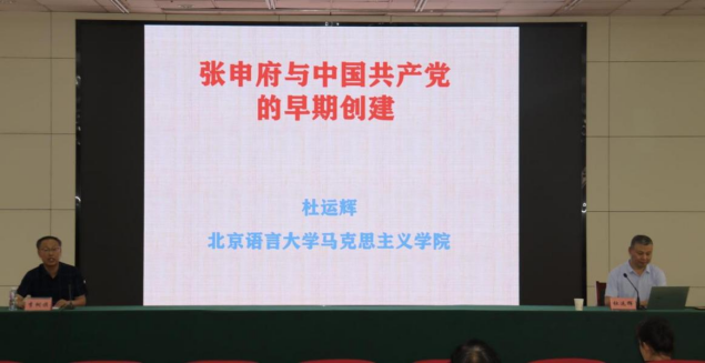 仪式后,杜运辉以《张申府与中国共产党的早期创建》为题开展专题讲座,他从张申府的家世生平、张申府与北京共产党小组、张申府与旅欧共产党小组、张申府与第一次国共合作、张申府与马克思主义的传播五个方面,介绍了张申府先生,对我们学习、研究中国共产党的创建和马克思主义中国化具有重要的指导意义。