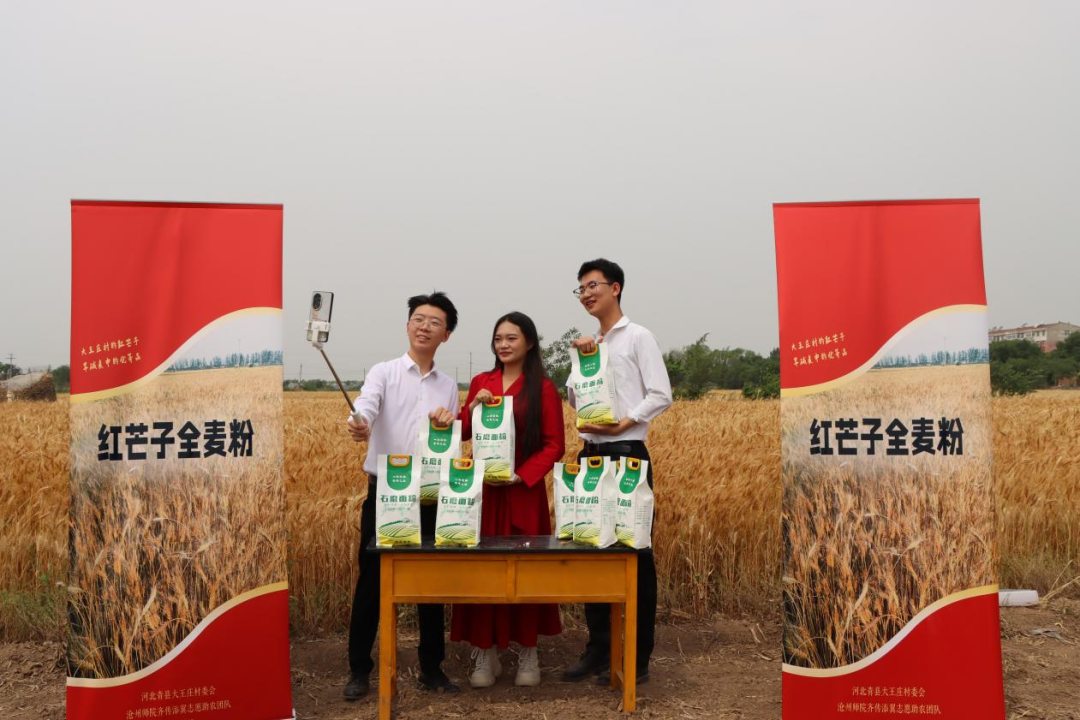时雨及芒种,四野皆插秧。家家麦饭美,处处菱歌长。6月5日,芒种节气的到来标志着仲夏时节正式开始。在农民喜迎稻麦丰收,欣喜开镰的日子,太阳集团齐越传媒学院院长张海燕,党总支书记潘治钢及教师郭晓月带领齐传添翼大学生公益助农直播团队携手河北青县大王庄村委会,共同发起了一场别开生面的爱心助农直播活动。此次活动的核心目标是推广当地特产——被誉为旱碱麦中的“王中王”的红芒子面粉,通过直播这一形式,将这一优质农产品带到更多消费者的餐桌上。