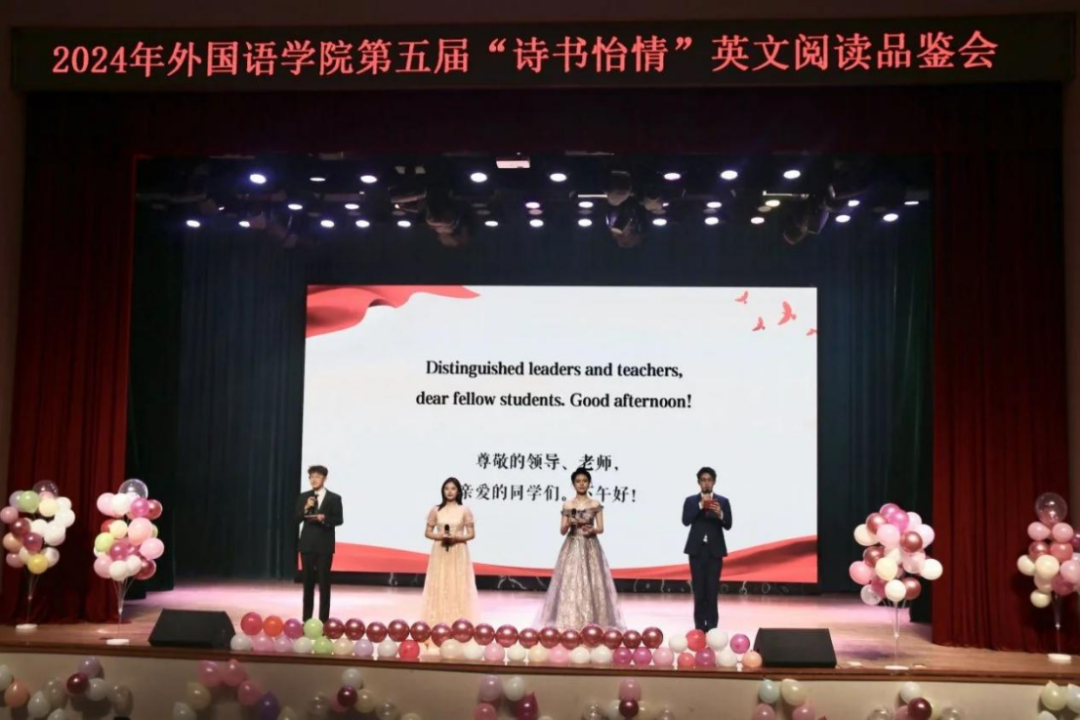 6月4日下午,外国语学院在冀春音乐厅举办第五届“诗书怡情”英文阅读品鉴会。沧州外国语学校党支部书记、校长李智、副书记张培武、副校长何伟贤及部分师生代表受邀出席活动。
