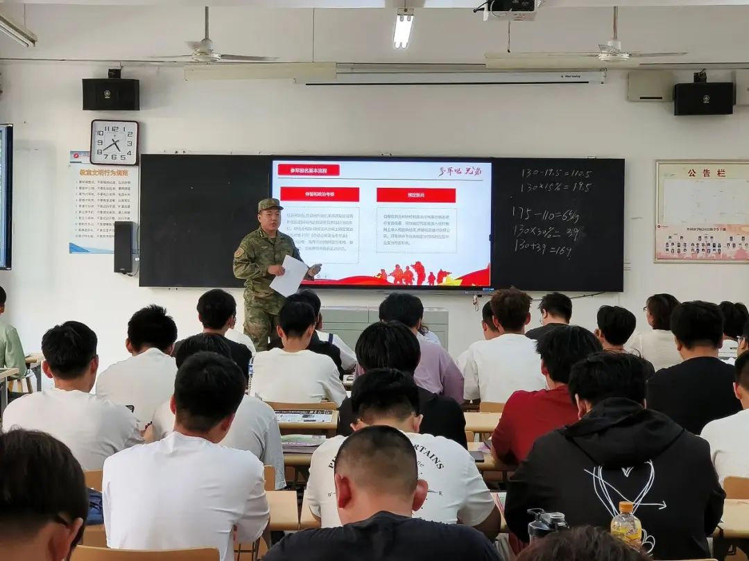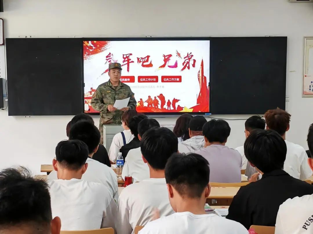 李子龙详细介绍了本年度的征兵工作计划和具体方案,从多个角度分析了参军对个人成长和国家发展的重要意义,使同学们对参军有了更为全面和深入的了解。