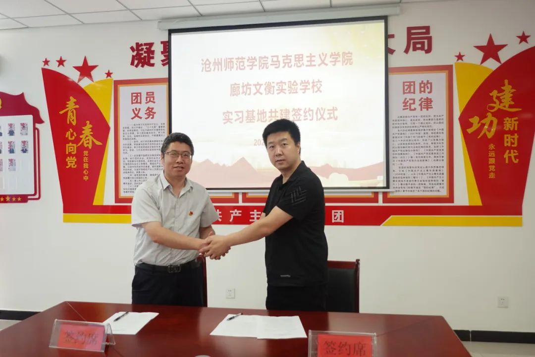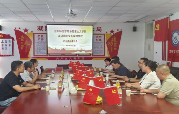 为深化校企合作,拓宽毕业生就业渠道,6月13日,马克思主义学院党总支书记顾大鹏、副院长刘云鹤及教师代表走访了廊坊文衡实验中学,校长陈建华、执行校长焦雷接待。