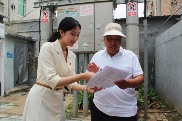 同学们向村民发放调查问卷,深入了解乡村振兴背景下的绿色发展模式。