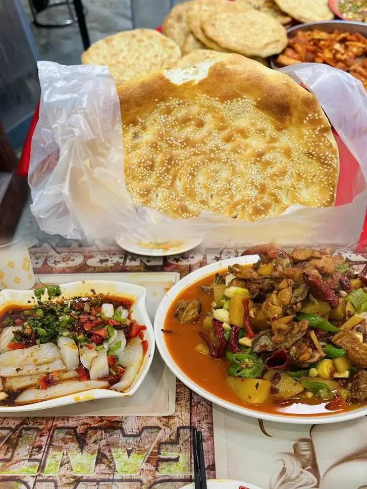 在休息的时候,我们品尝了新疆的特色美食,新疆的美食超级超级多,根本吃不完——羊肉串、大盘鸡、拌面、烤鱼、烤包子、烤馕、炒米粉、葡萄、哈密瓜、酸奶疙瘩……