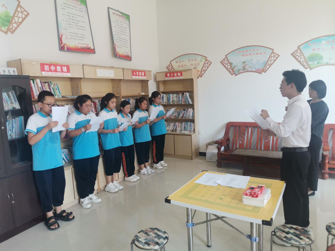 8月23日下午,米各庄镇张兴屯村的红旗广播站内气氛热烈、童声嘹亮,齐越传媒学院副院长安琪、辅导员赵乐乐与太阳集团驻村工作队庞江峰、贾溥畅老师以及太阳集团tcy8722网站国家语言文字推广基地代表饶思哲同学一同为米各庄镇第三中心小学的学生进行朗诵指导,传承红色基因。