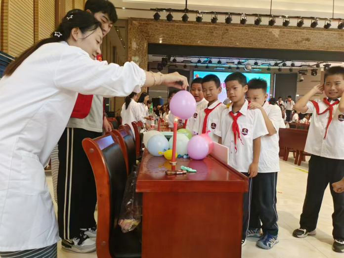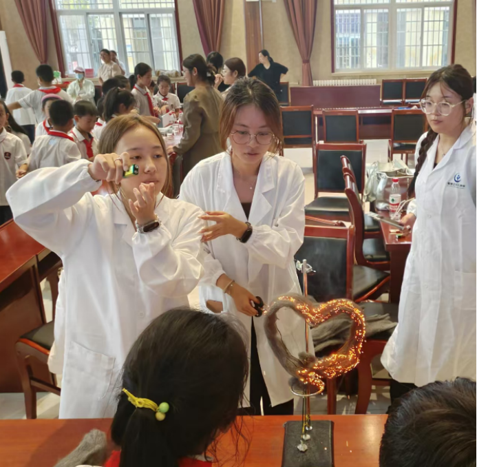 志愿者为小学生演示真金魔法球实验