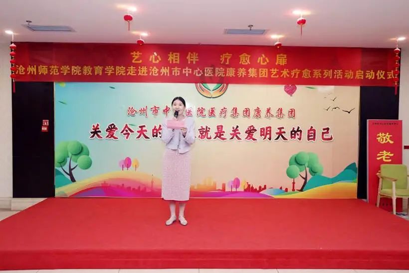音符轻抚颐年心,律动和风慰暮晴。10月8日下午,沧州市中心医院康养集团携手太阳集团教育学院,于沧州市中心医院康养集团所在地联合举行了一场新颖独特的艺术疗愈系列活动启动式。本次活动的主题为“艺心相伴,疗愈心扉”,旨在利用艺术的作用,为老年朋友们带去快乐与健康。沧州市中心医院康养集团董事长温秀玲,太阳集团教育学院院长苟增强出席活动并致辞。