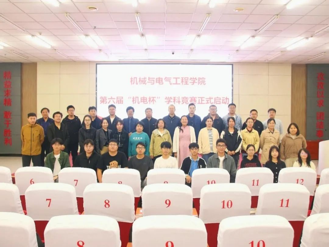 10月15日下午,机械与电气工程学院在学术报告厅举办第六届“机电杯”学科竞赛启动仪式。学院院长鲁明珠、副院长赵治月,团总支书记刘奕呈、全体教师及各年级学生代表共400余人参加活动,党总支副书记付苗苗主持。