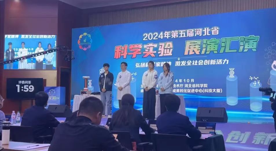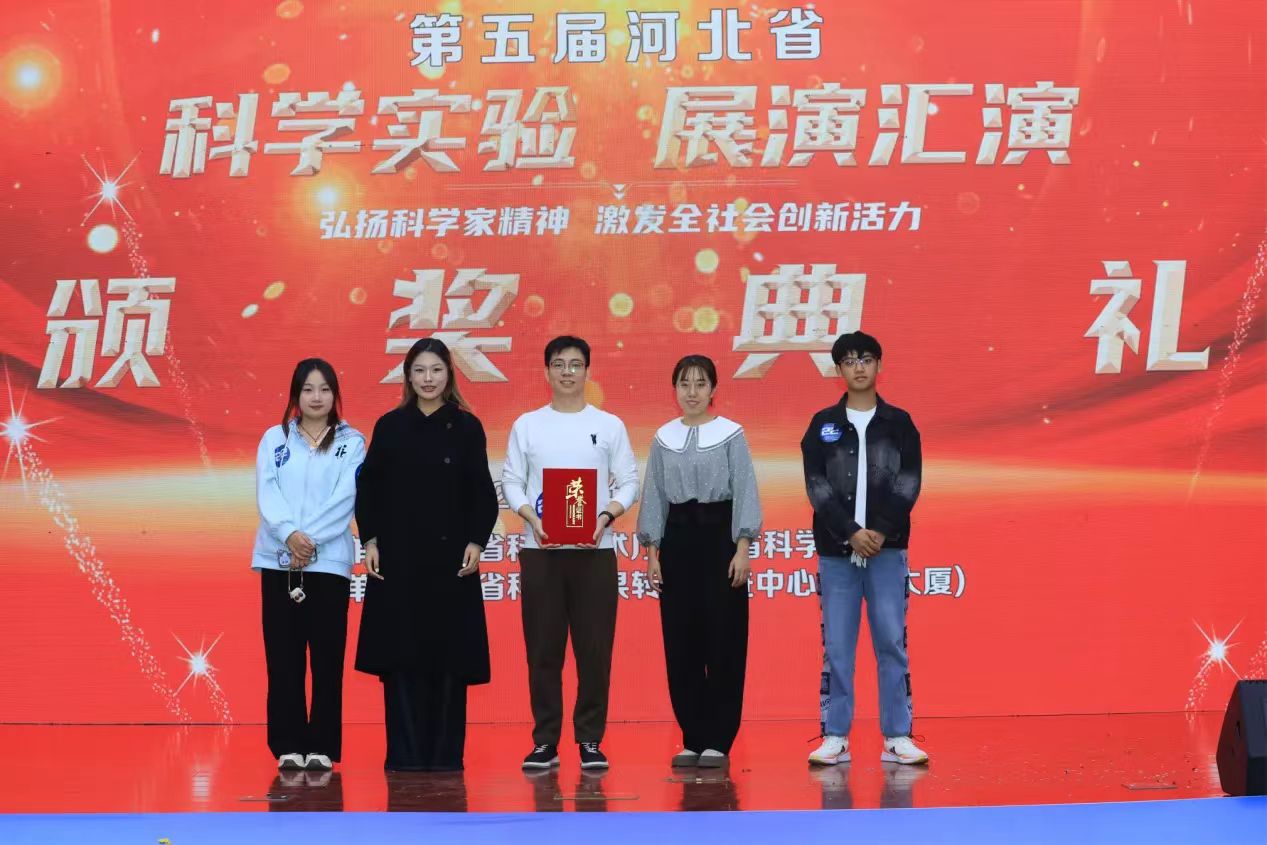 “2024年第五届河北省科学实验展演汇演活动”于10月25日在石家庄举行。本次活动由河北省科学技术厅与河北省科学院携手主办,河北省科技成果转化促进中心鼎力承办。经过初赛激烈角逐,25支精英团队从56支队伍中晋级决赛,现场呈现了一场科学与智慧的盛宴。物理与信息工程学院刘业堃、胡晴晴、吴沫虹三位老师带领杨梓萱、张欣媛、张家铭(机械与电气工程学院)三位同学组成的团队,凭借项目《“雷神”驾到》荣获二等奖。该项目通过一场震撼人心的闪电秀,生动诠释了特斯拉的科学精神与特斯拉线圈的神奇魅力。