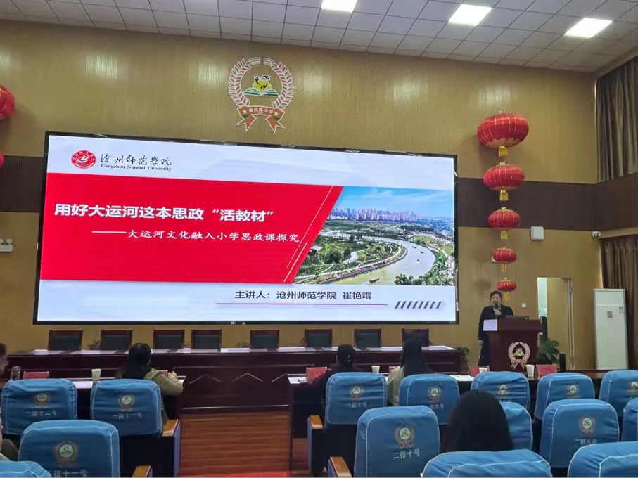 崔艳霜以“用好大运河这本思政‘活教材’”为主题,从大运河文化简介、用好大运河思政“活教材”的方法、大运河文化融入日常思政课教学的意义三个方面作了报告。