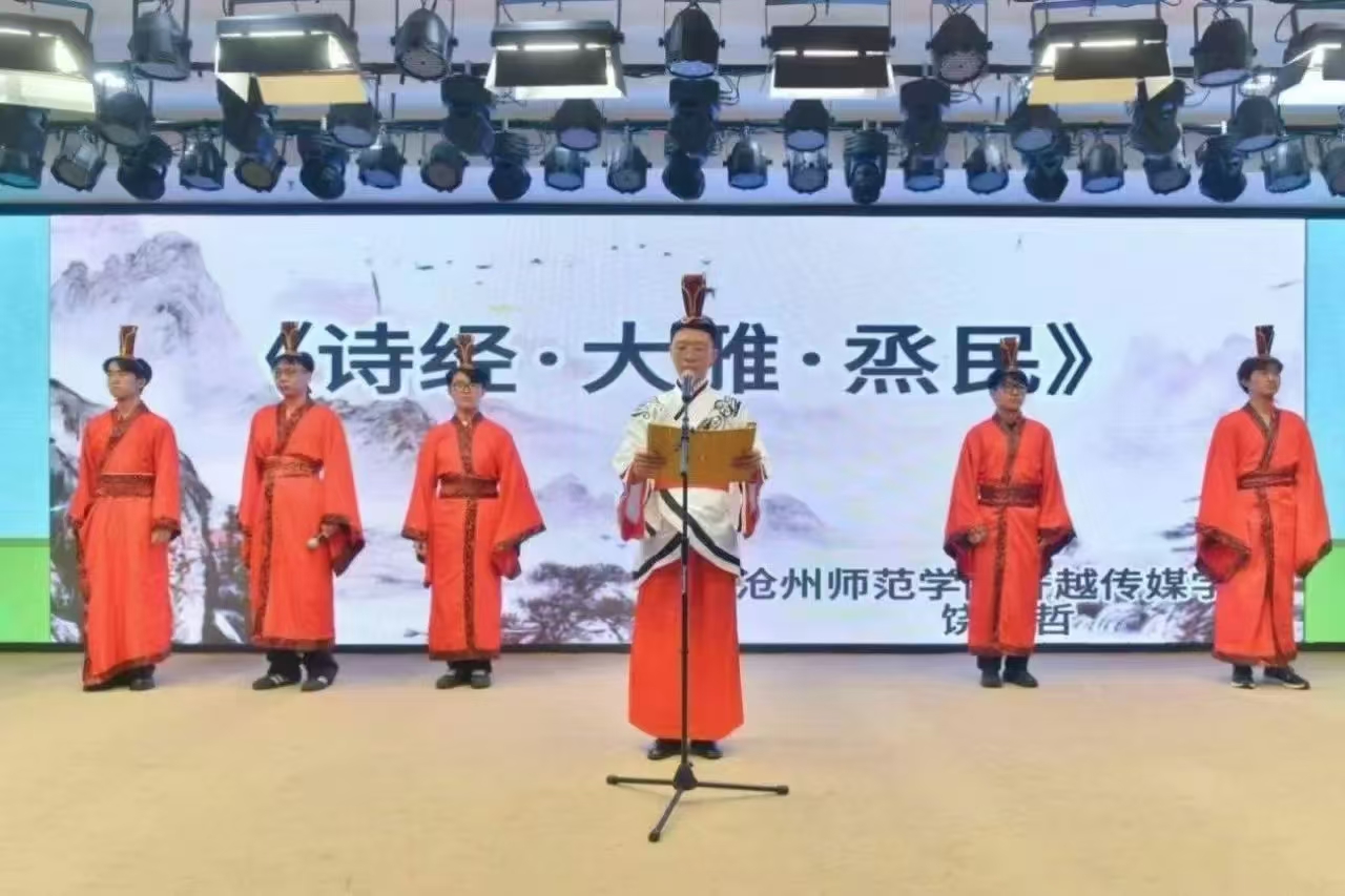 齐越传媒学院播音与主持艺术专业学生分别对《大雅 烝民》《秦风 无衣》以及诗经中的经典名篇进行了精彩演绎与激情诵读。