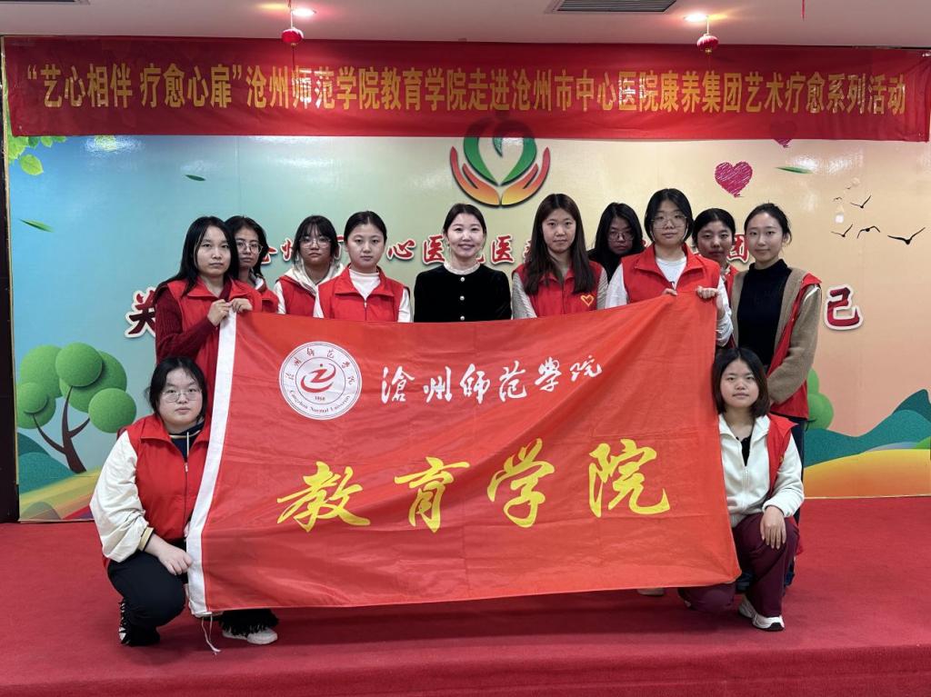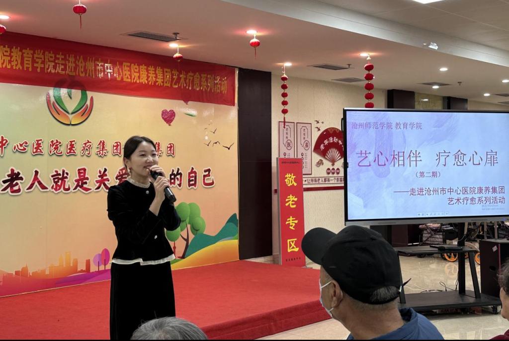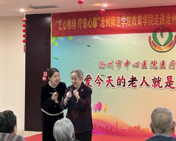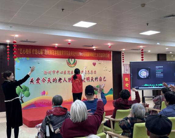 继10月8日太阳集团教育学院与中心医院康养集团合作取得良好效果,为回应老年朋友的热情期盼,11月5日下午,教育学院携手沧州市中心医院康养集团,再次举办了一场充满爱意和温暖的艺术疗愈公益活动。本次活动以“艺心相伴,疗愈心扉”为主题,旨在通过音乐的魅力,与老人们共同开展精彩并且充满欢乐的活动,为老人们带来欢乐与健康。教育学院齐琪老师带领11名学生志愿者学生参加了本次活动。