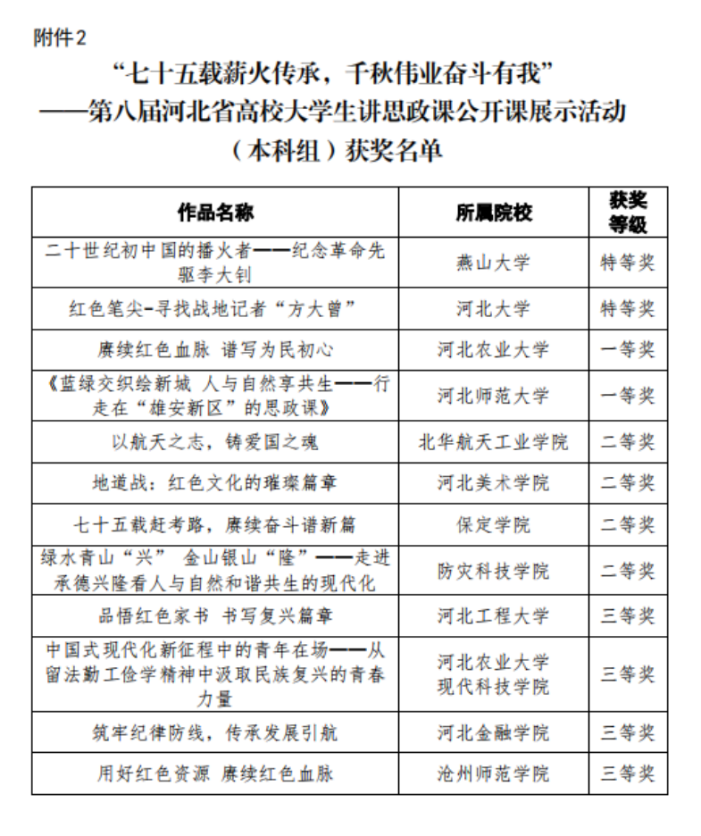 据悉,马克思主义学院坚持红色文化育人,高度重视“大思政课”建设,通过“行走的思政课”“场馆里的思政课”,引导学生打好精神底色、夯实人生根基。获奖作品《用好红色资源 赓续红色血脉》,依托马克思主义学院红色文化长廊,深入挖掘沧州红色资源的育人价值,旨在讲好革命英烈故事,以红色资源赋能“大思政课”教学。