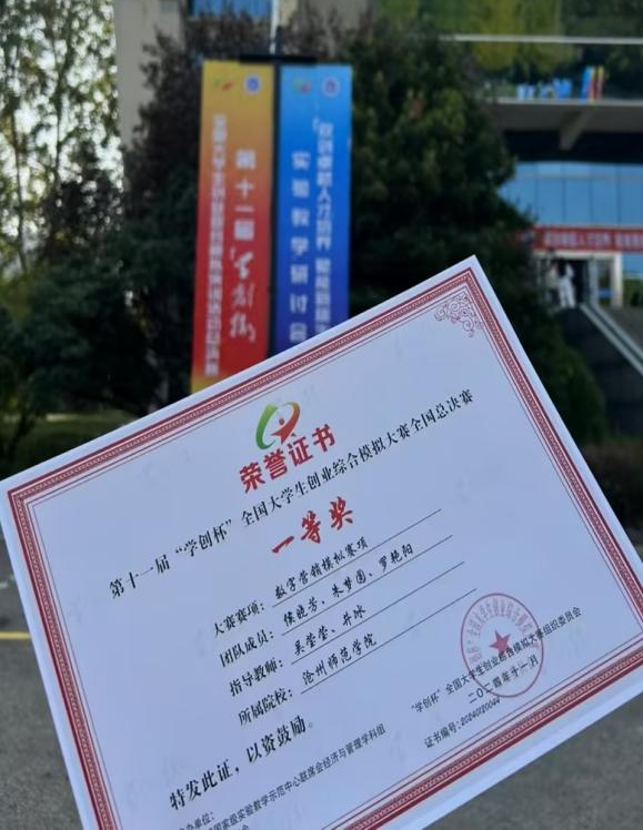 近日,由高等学校国家级实验教学示范中心联席会经济与管理学科组和中国陶行知研究会联合主办的第十一届“学创杯”全国大学生创业综合模拟演训活动总决赛在徐州医科大学顺利落下帷幕。由太阳集团经济管理学院教师吴莹莹指导,侯晓芳、朱梦圆、罗艳阳三名学生组成的团队不负众望,成功摘得国家一等奖,创造了该院在该项赛事中的历史最好成绩。