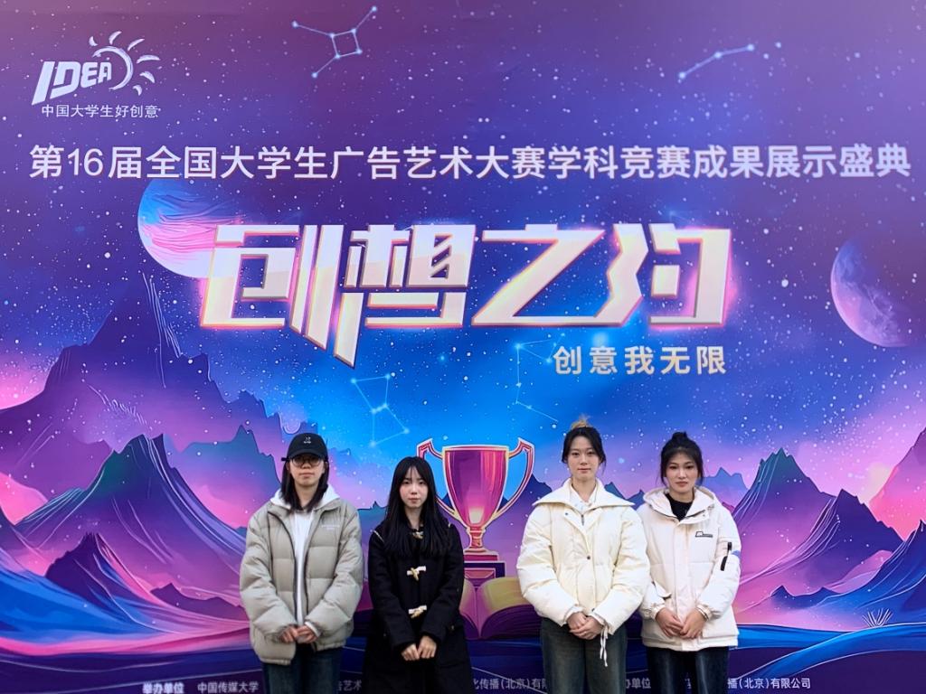 刘雨萌表示:“此次机会来之不易,首先由衷感谢院领导的大力支持与广告学专业教师们的悉心培养,尤其是本次策划案的指导教师赵子剑老师和于园园老师。同时,本次成绩的取得离不开全体主创成员的默契合作与辛勤付出。这个奖项不仅是对过去的肯定,更是对未来的激励。在颁奖典礼上聆听业内专家的指导讲评,认真观摩其他院校的获奖作品后,我感到受益良多。我将以此为动力,继续努力学习,不断提升专业能力,为将来的职业生涯打下坚实基础。”