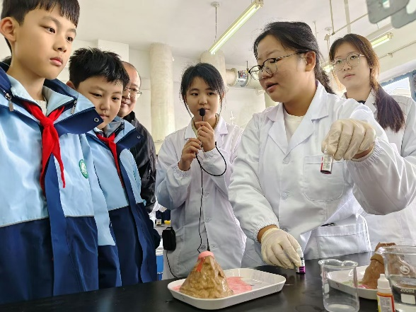 化学与化工学院师生科普团队以“小小探索者,大大科学梦”为主题,倾力打造了由5个科普实验和1座仿真工厂构成的科学盛宴。在这场盛宴中,小学生们与志愿者互动交流,参观了煤制甲醇半实物工厂,亲手操作了会变色的魔法棒、自制火山爆发模型、揭秘无字天书的消失墨迹、探索隐形墨水的奥秘以及发现生活中的色彩镜。这些活动不仅让小学生在实践中领悟化学与日常生活的紧密联系,探究化学现象及原理,更让他们深刻感受到化学这一学科的神奇与魅力!