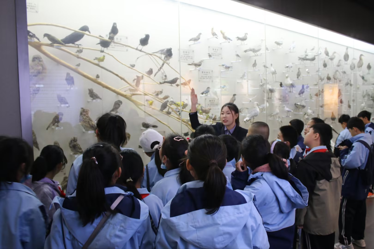 来到生物标本馆,学生们立即被馆藏的丰富多彩栩栩如生的动植物标本所吸引,在科普志愿者的带领下,学生们依次参观了大鸨区、无脊椎动物区、两栖类、爬行类、哺乳类和鸟类、植物等展区。在大鸨区有的标本振翅欲飞、有的标本威严伫立,鸟类区千姿百态的鸟伫立枝头争奇斗艳,昆虫区蝴蝶标本似翩翩起舞,哺乳区有的动物雄壮威武、有的机智灵动,植物展区有的果实累累、有的生机勃勃。生科院的科普志愿者向学生详细的介绍了各种动植物的主要形态特征、生活环境、生活习性和繁衍特点,展示了华北地区特别是沧州地区丰富的动植物资源,传播了环保意识和绿色发展理念,激发了小学生对生命科学的热爱和探索欲望,激发了小学生热爱家乡、热爱祖国的家国情怀,增强了小学生学好本领建设沧州报效祖国的志气。