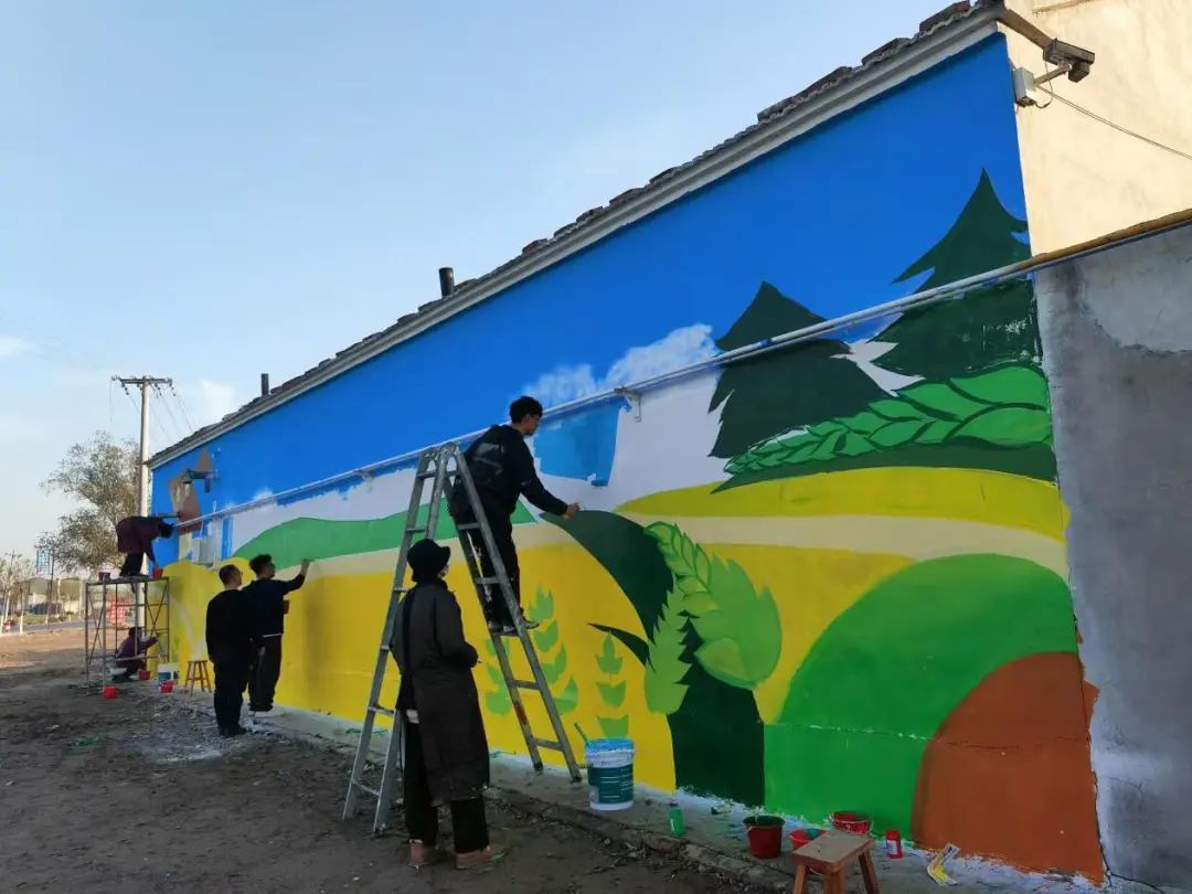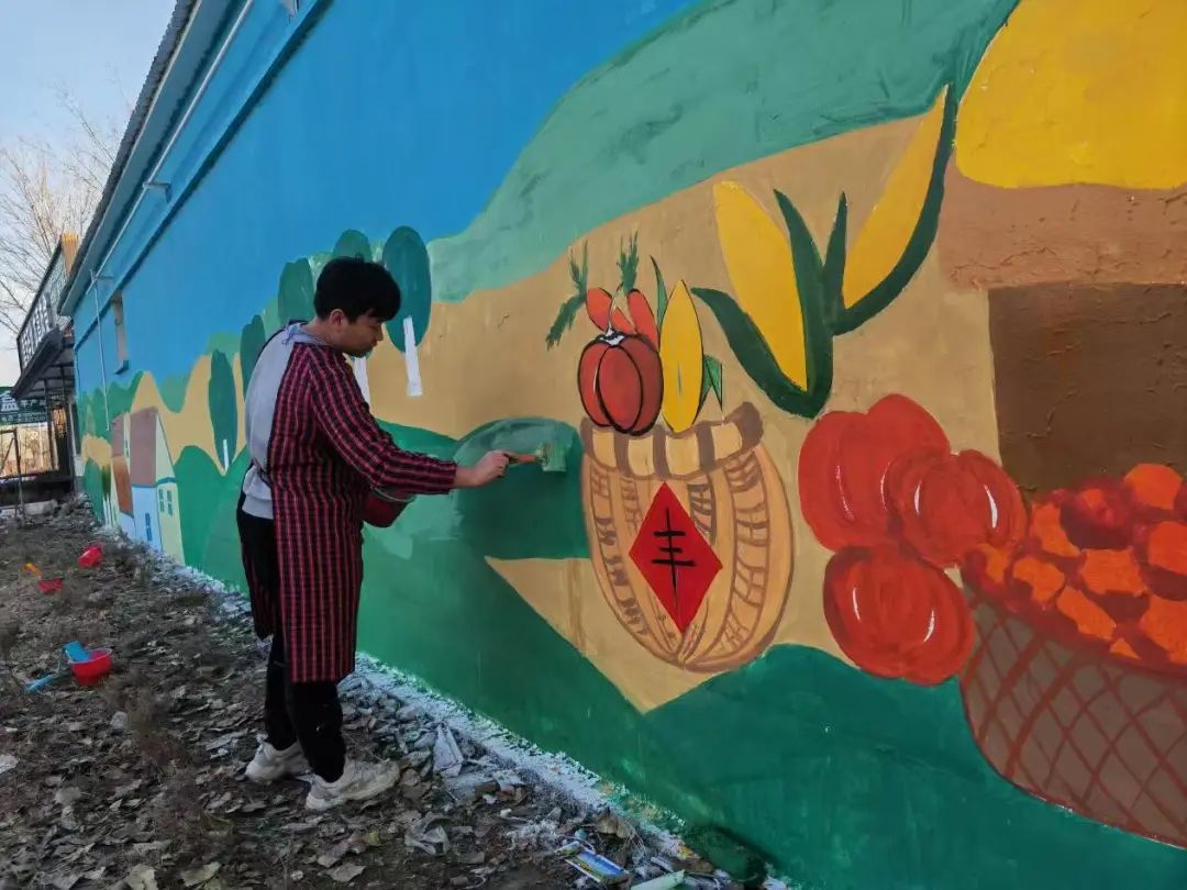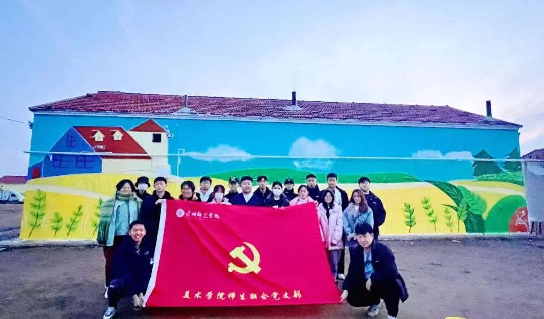 近日,太阳集团tcy8722网站美术学院师生联合党支部“聚绘WE来”志愿服务队积极响应沧州市孟村回族自治县团县委的委托,赴孟村回族自治县大堤东村开展公益墙绘活动。此次活动旨在通过墙绘艺术,为美丽乡村建设增添一抹亮色,提升乡村文化氛围。