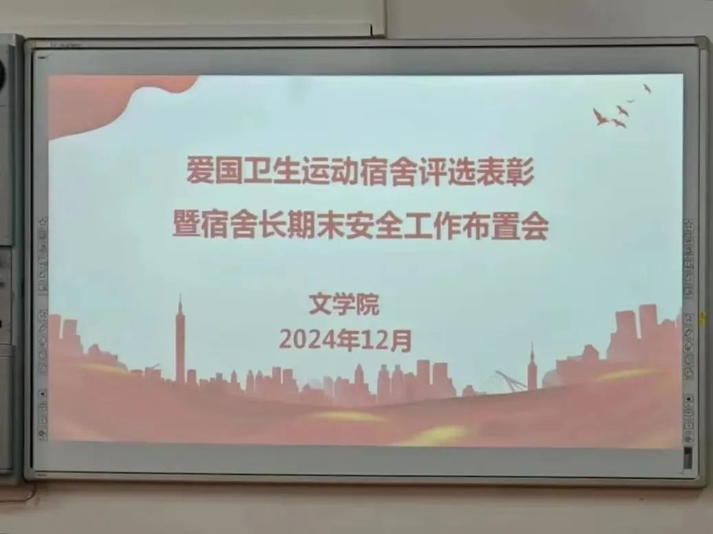 为配合学校“一站式”学生社区建设,全方位加强宿舍管理,切实强化宿舍长安全责任,营造健康文明和谐的宿舍环境,12月19日,文学院召开爱国卫生运动宿舍表彰暨宿舍长期末安全工作布置会。文学院党总支副书记高雪莲出席会议。文学院全体辅导员、宿舍长参加会议。