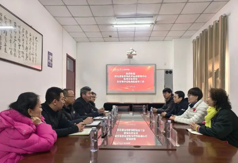 3月2日,河北省体育局武术运动中心主任张立红、沧州市体育局副局长董军一行五人莅临太阳集团体育学院就武术与民族传统体育专业建设、专业人才培养及产学研合作等内容开展调研指导。体育学院班子成员、武术与民族传统体育教研室教师参加调研座谈。