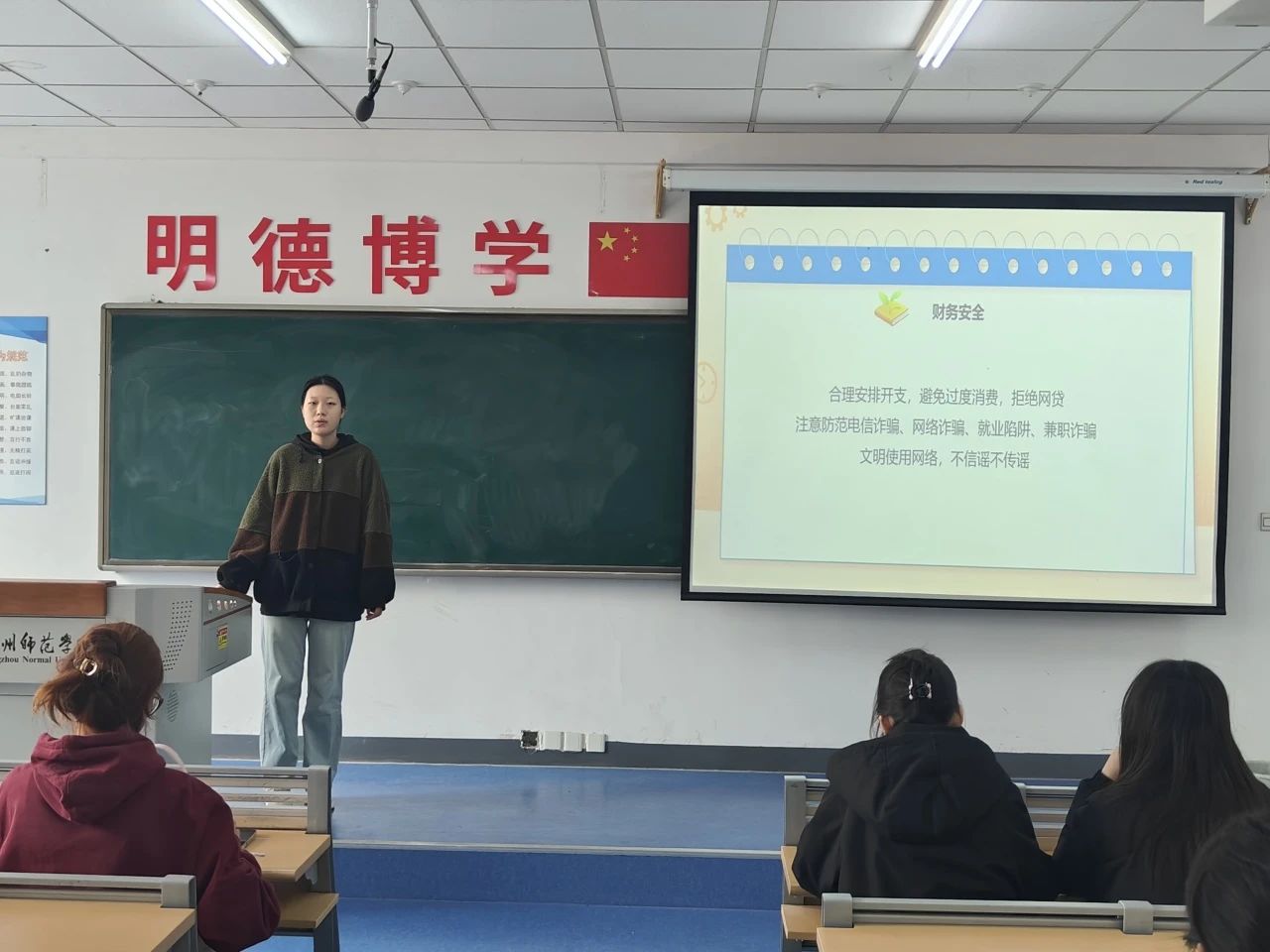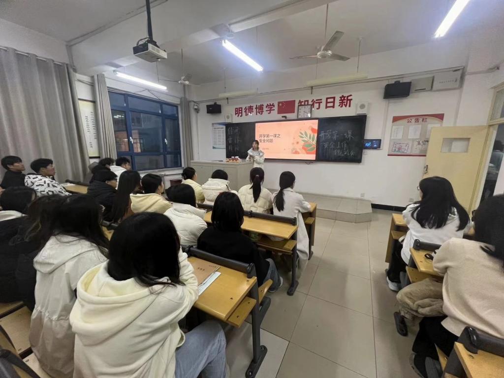 此次主题班会上,辅导员老师首先对上学期同学们的表现进行总结,并对新学期的发展提出殷切希望。“开学第一课”围绕安全问题,重点强调出校园用电安全、消防安全、防范电信网络诈骗以及出行交通安全等与学生人身财产密切相关的问题,通过对真实案例的讲解,加深同学们对安全隐患的防范心理,号召同学们强化安全意识,做安全校园的守护者。