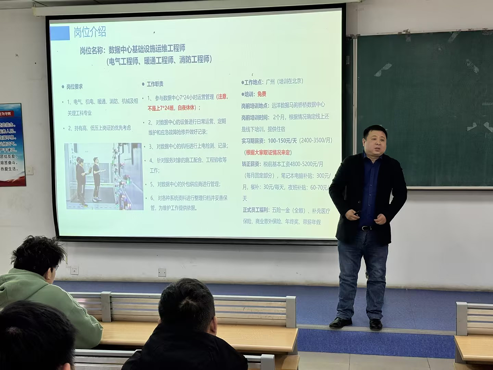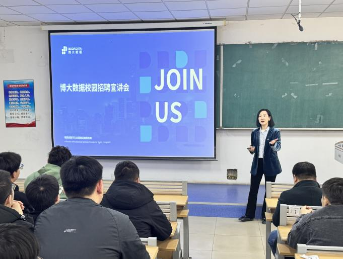 本场双选会是大数据中心行业专场,邀请了博大数据服务(深圳)有限公司和北京云泰数通互联网科技有限公司进校参加,这两家企业均为国内大数据中心行业翘楚。博大数据服务(深圳)有限公司是国内行业领先的融合算力基础设施服务商,具有强大的算力建设能力、平台服务能力以及算力运营能力,赋能数字经济可持续发展。北京云泰数通互联网科技有限公司则是一家专注于大型数据中心项目投资、建设及综合运营的专业公司,服务客户包括中国电信、中国移动、中国联通、阿里、京东等行业领军企业。