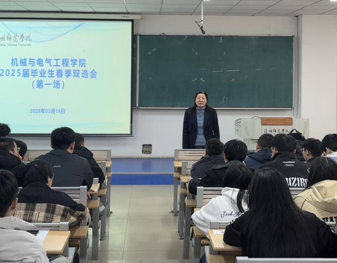 为深化校企人才共育机制,搭建校企合作新平台,助力毕业生高质量就业,3月18日下午,机械与电气工程学院2025届毕业生春季首场双选会在鲲鹏教学楼七阶梯教室举行。机械与电气工程学院院长鲁明珠、党总支副书记李杰、辅导员郭雷和2025届全体毕业生、2022级学生参加活动。