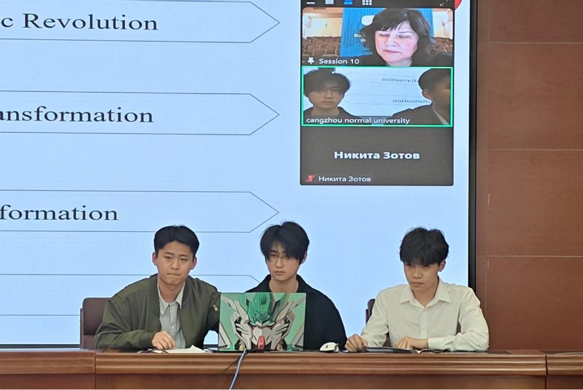 韩宇琦、王墨涵、李世涛在大会上做A study of the impact of emerging technology applications on bussiness transformation in the context of industry 5.0汇报