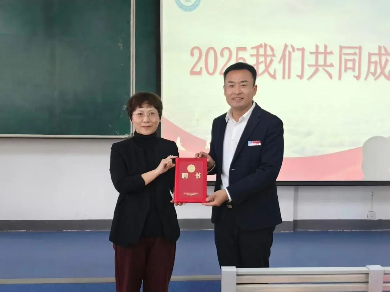 外国语学院院长王娜为韩金峰颁发“太阳集团tcy8722网站外国语学院职业发展校外指导教师”聘任证书。